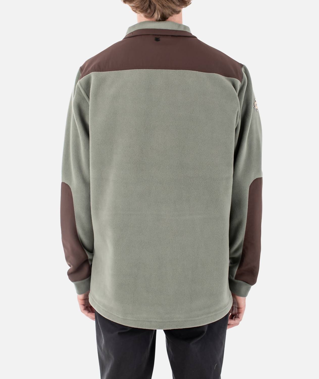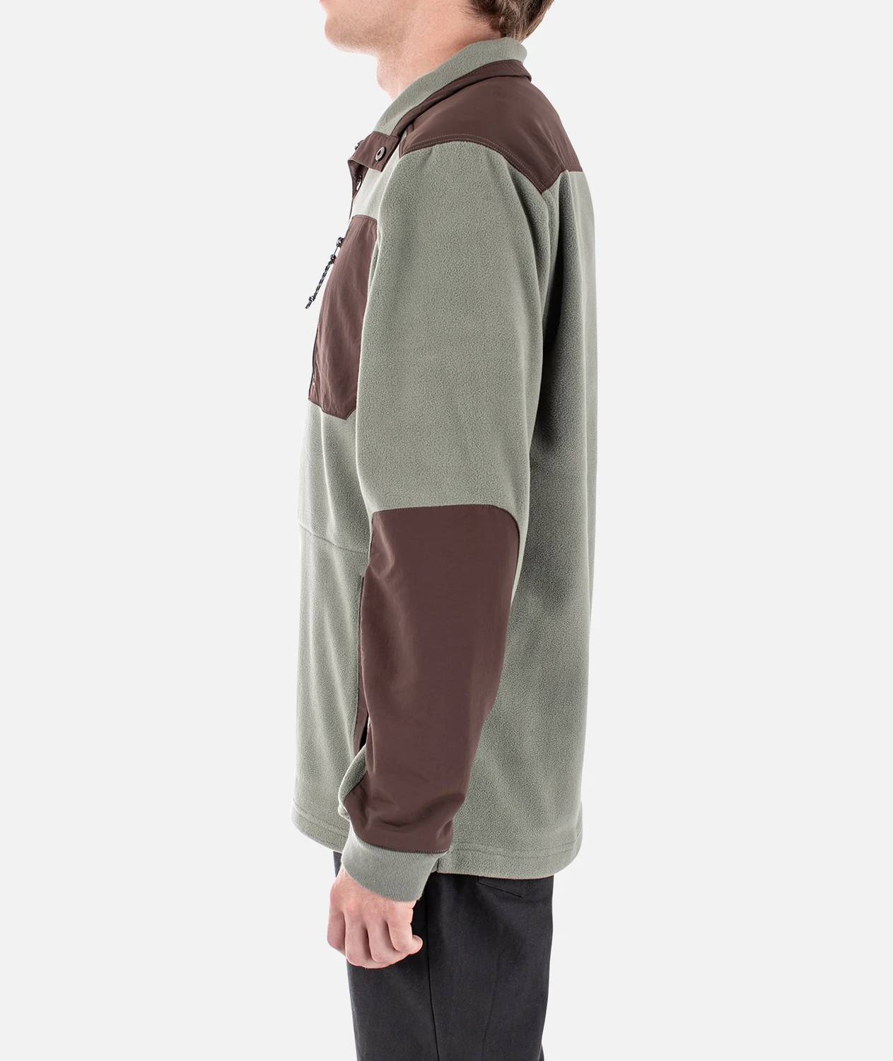 The Mock-Neck Polar Fleece Jacket features a front zipper patch pocket and a cozy kangaroo pocket, offering both style and functionality for cold weather. 100% Recycled Polyester.