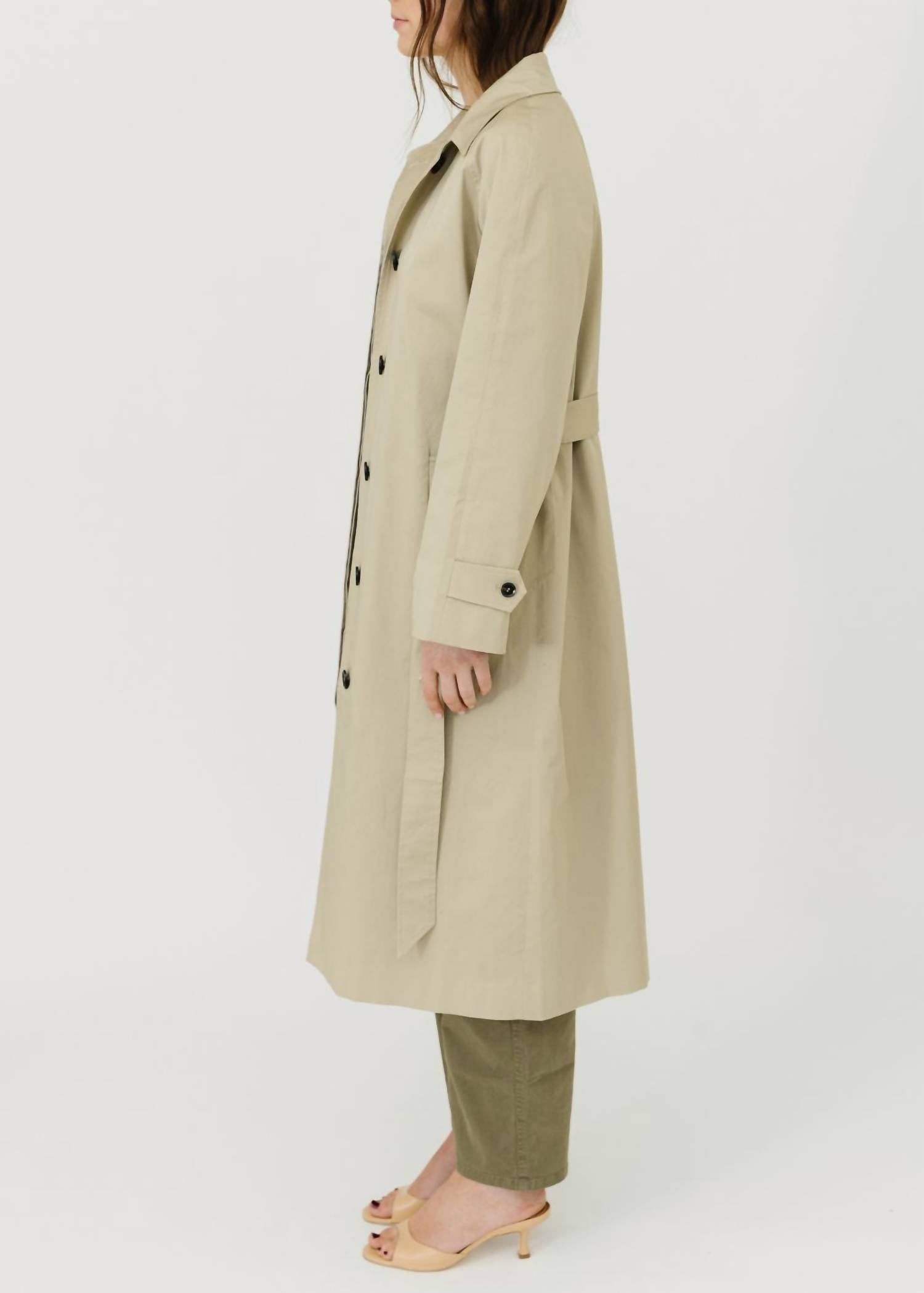 Introducing the Velvet Raheal Jacket by Velvet by Graham & Spencer, a chic and functional masterpiece from the Velvet x Cleo Wade collaboration. This khaki trench coat features long sleeves and a cotton-elastane composition, offering a touch of stretch for comfort. With a detachable belt and button closure, it provides both versatility and elegance. Fully lined for a refined look, it includes practical front welt pockets and two interior chest pockets. Care for this stylish piece with machine wash instructions to maintain its impeccable condition.