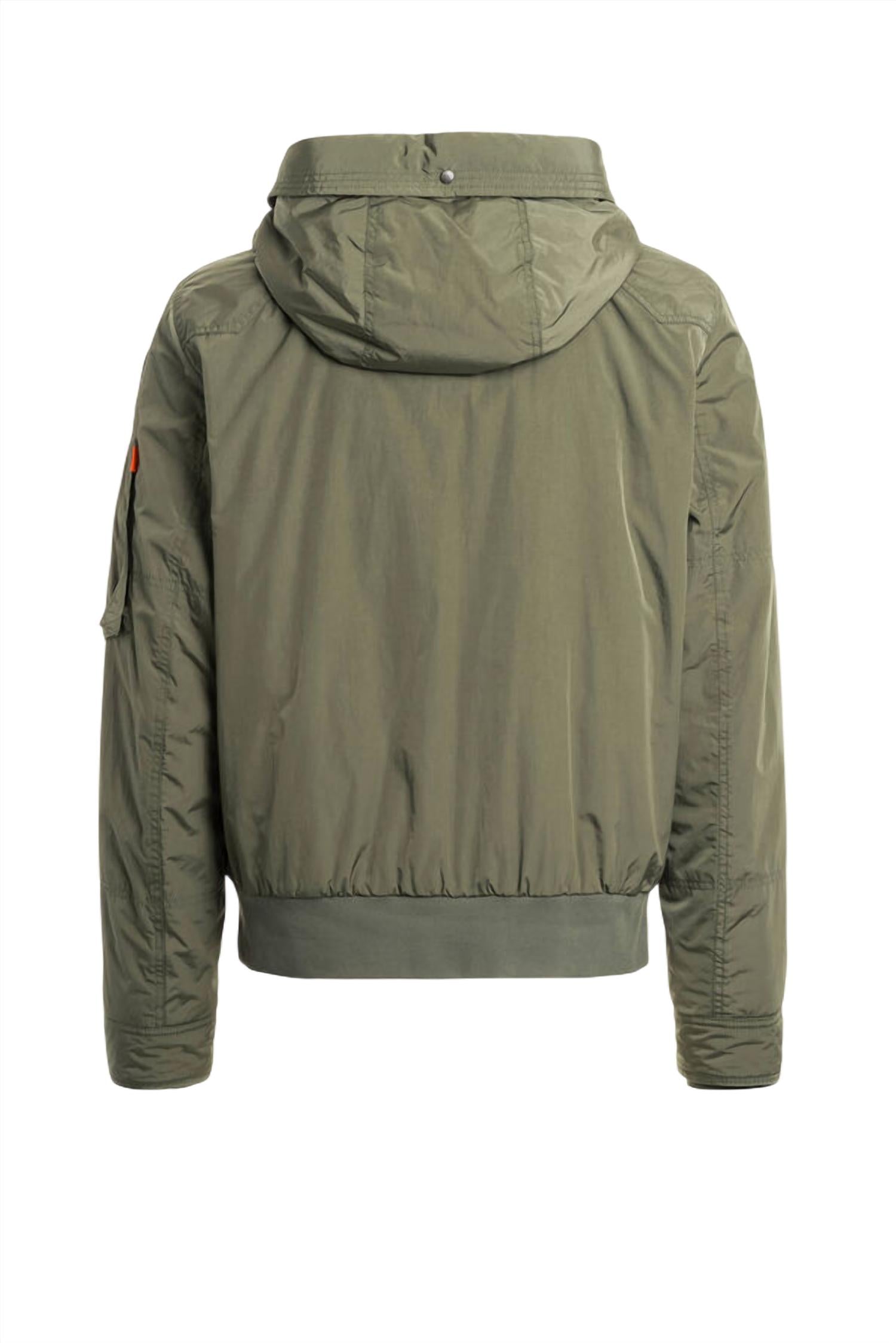 Featuring a front closure with two-way zip, covered with button-up flap. Adjustable drawstring hood with ventilation holes. Two outer zipper pockets, one sleeve pocket and an inner mesh pocket.. Adjustable snap button cuffs and inner cuff in ribbed fabric. Elastic ribbed bottom. Parajumpers patch on the sleeve and iconic yellow tape closure at the neck. Outer fabric: recycled nylon mini ripstop, with polyurethane coating on the back. Lining: semi-shiny finish recycled nylon taffetaPadding: 100% Polyester.