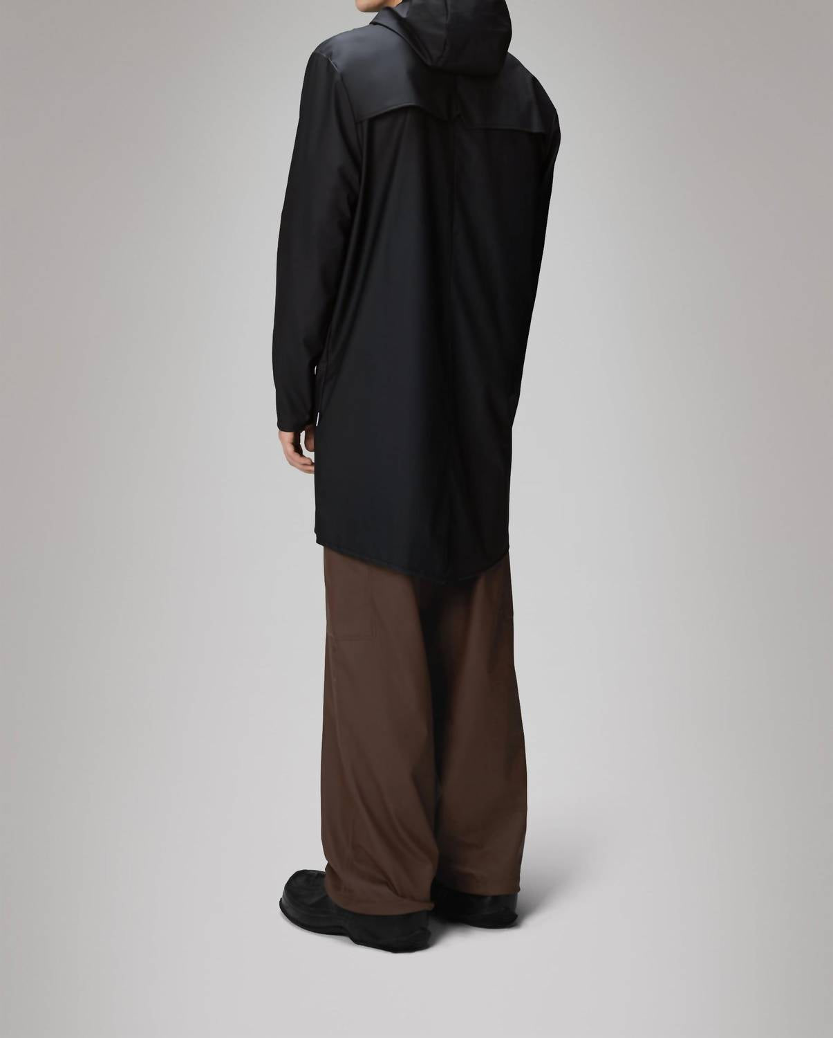 Presenting the Contemporary Long Jacket by Rains, an elevated version of the timeless Jacket style that encapsulates Scandinavian simplicity. With long sleeves and crafted from 100% polyester with a polyurethane coating, this raincoat combines functionality with a sleek silhouette, featuring a generous length of 36.02 inches. Originating from Rains, this unisex piece includes a practical snap closure, adjustable cuffs, and a hooded neckline that are perfect for the fall camping season. Care for your jacket by machine washing in cold water at 30°C; avoid bleach, tumble drying, ironing, and dry cleaning to maintain its impeccable finish.