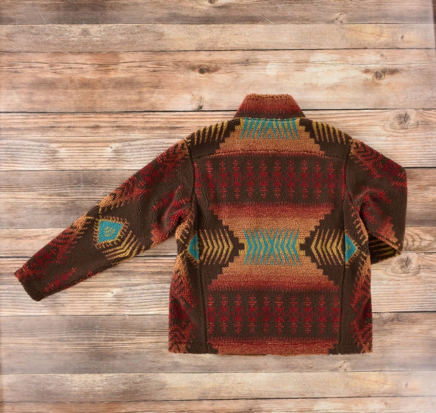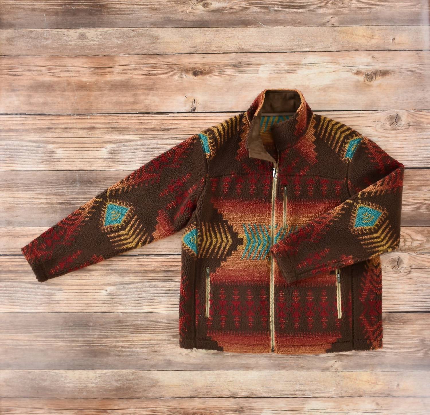 Meet the Trail Jacket by Tasha Polizzi, a stylish and functional choice for those who love the outdoors. This men's jacket embraces an Aztec multicolor pattern with long sleeves and a practical zip closure. Made from 70% polyester and 30% acrylic with a 100% polyester lining, this piece guarantees warmth and comfort. The jacket features a mockneck, adding a touch of class while keeping you cozy.