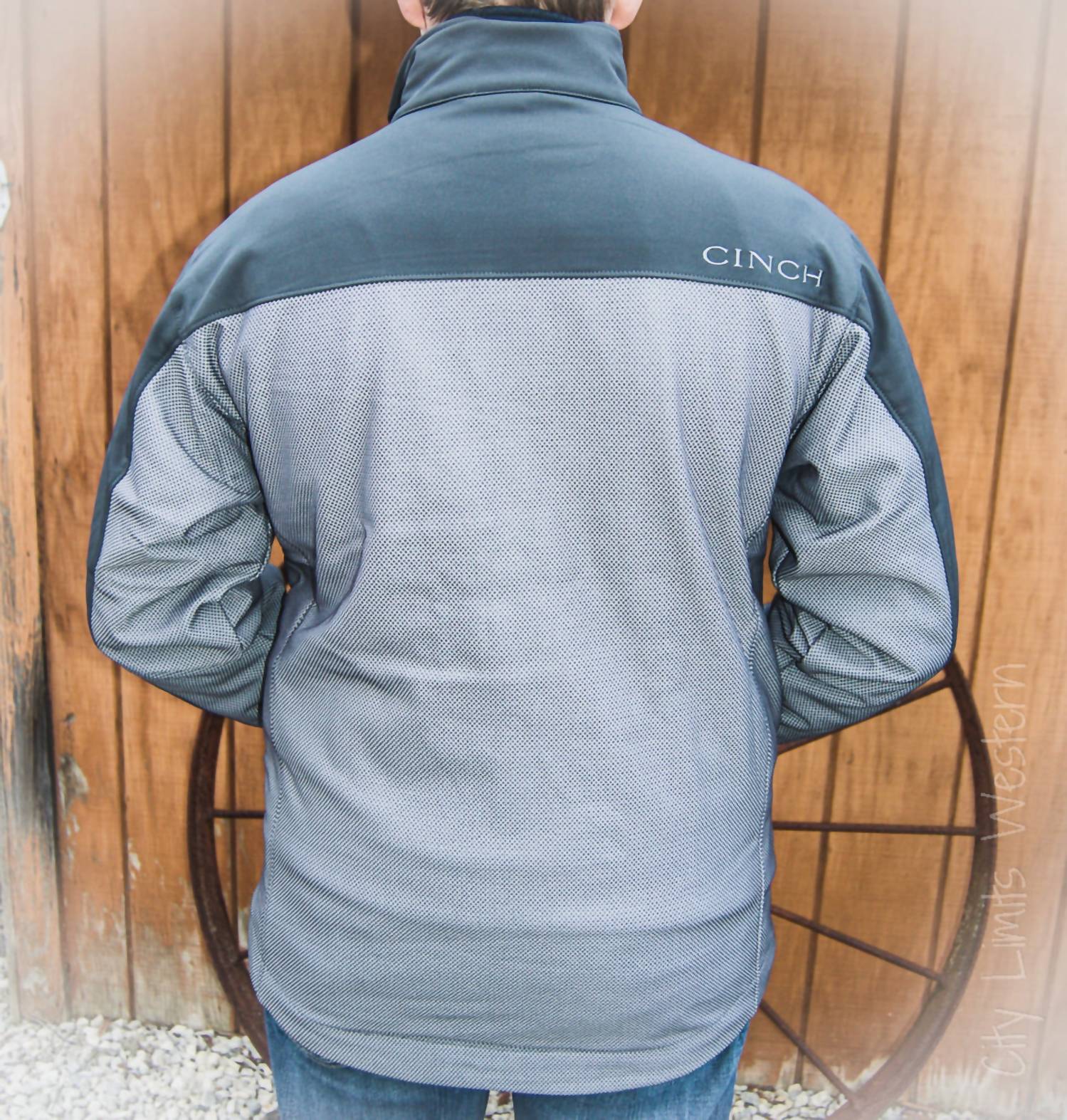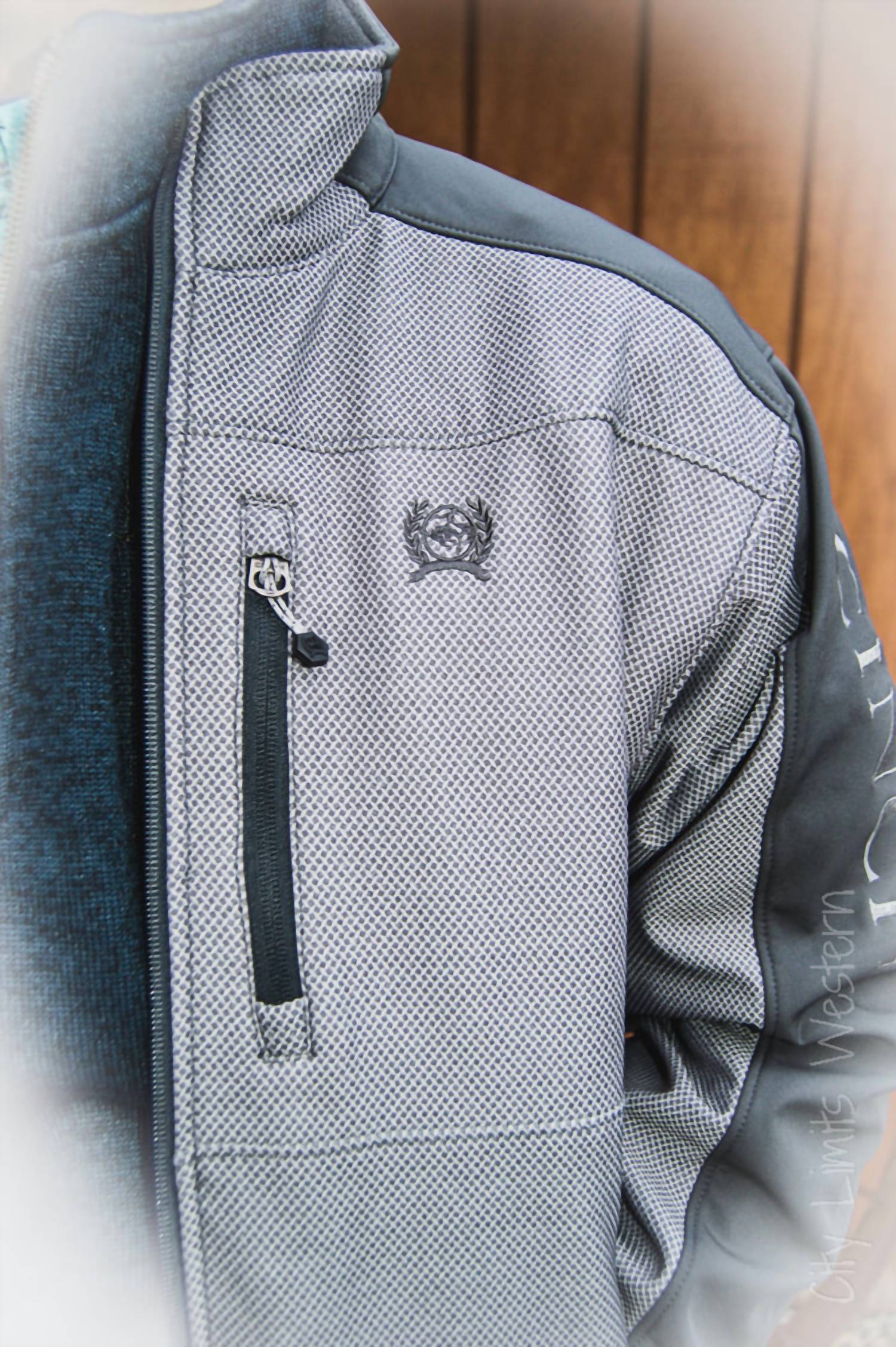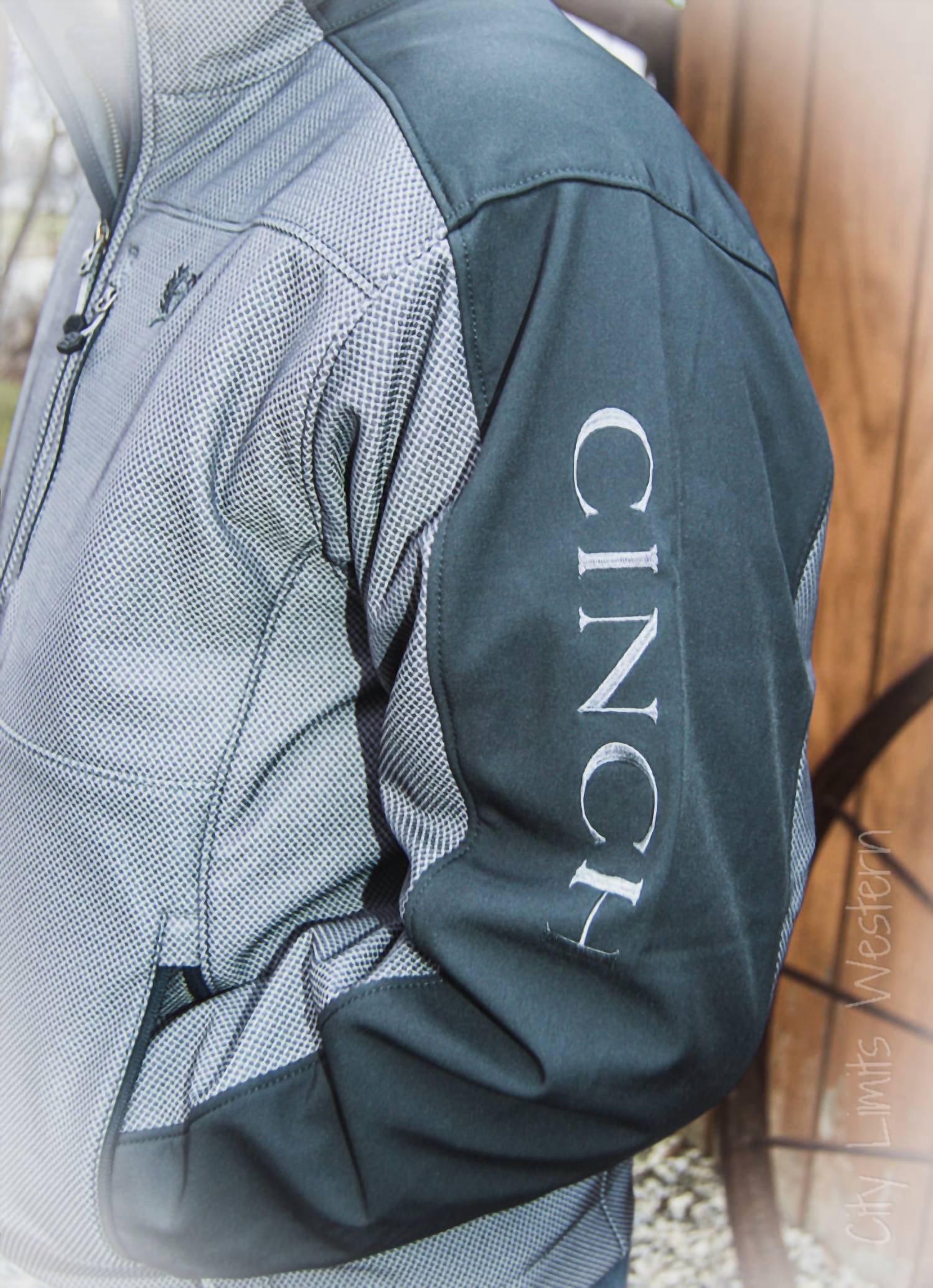 Experience the ultimate in style and protection with the Men's CC Bonded Jacket by CINCH, presented in a dynamic Grey on Grey colorway. This lightweight, solid patterned jacket features long sleeves and a flexible poly-spandex construction with a mock neck design. It includes multiple practical elements like dual concealed inner pockets, zip closure, and zippered exterior pockets, all enhanced by a Durable Water Resistant (DWR) finish. Perfect for winter, this jacket does not include specific wash or dry instructions, so handle with care.