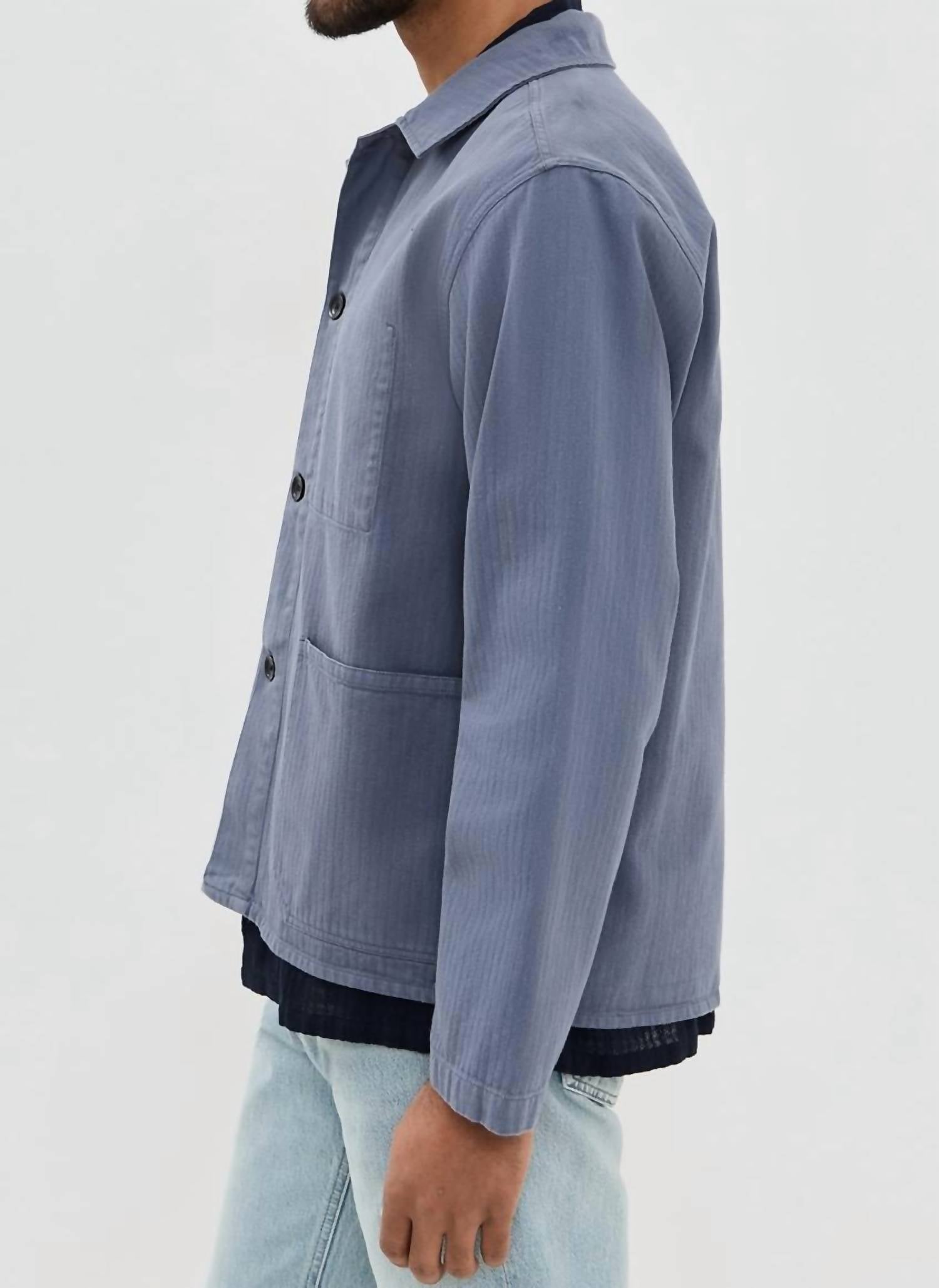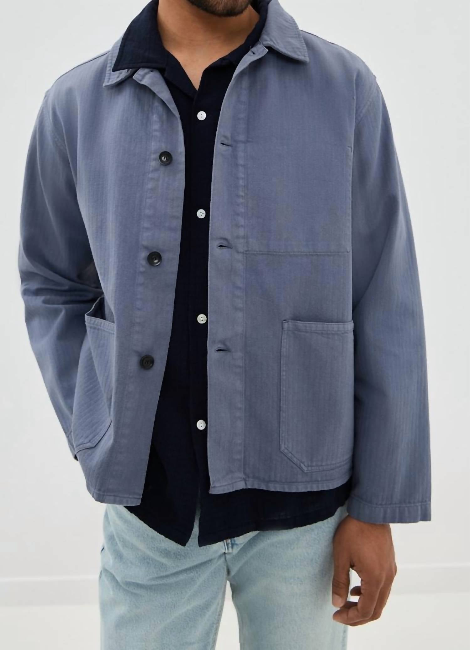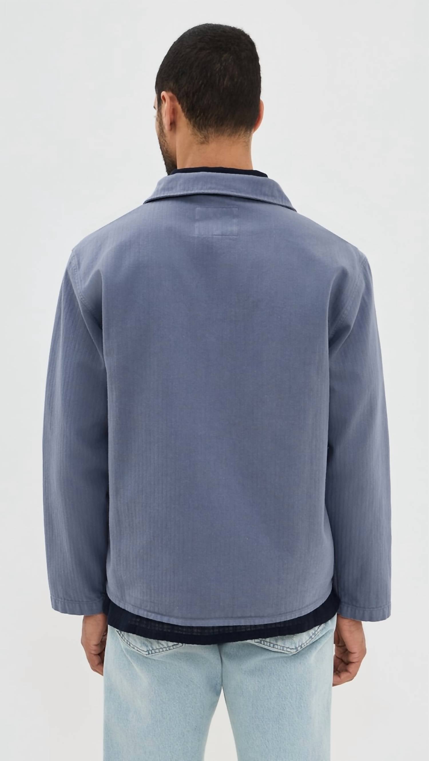 Meet the French Vintage Overshirt by Knickerbocker, a stylish nod to 90s fashion perfect for your fall travel wardrobe. Designed with long sleeves and a collared neckline, this overshirt is crafted from 100% cotton in a mid-weight herringbone weave for comfort and style. Measuring 26.5 inches in garment length, it features faux horn buttons for a classic button closure and practical patch front pockets. Made in Portugal, care for this piece easily with a cold machine wash.