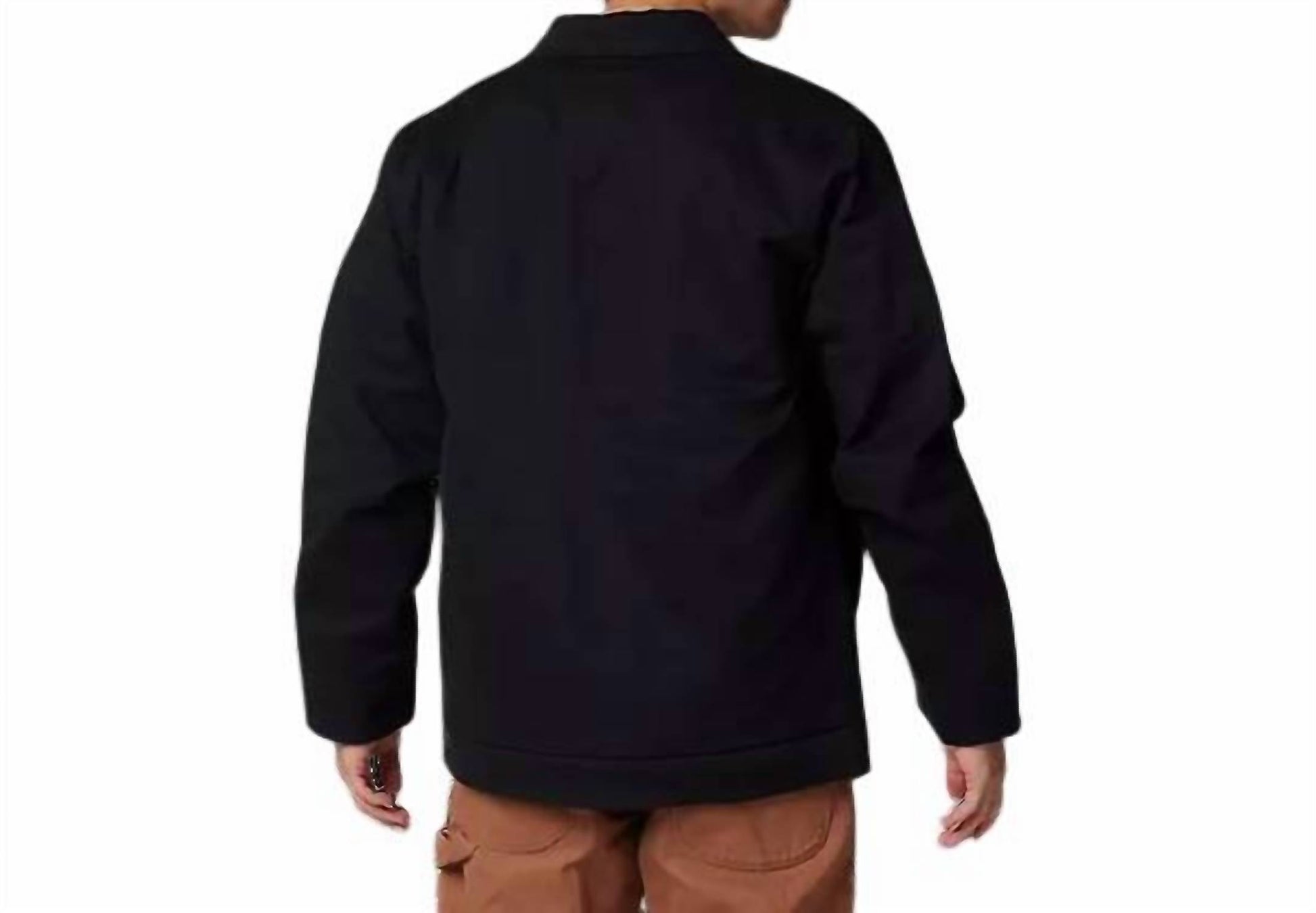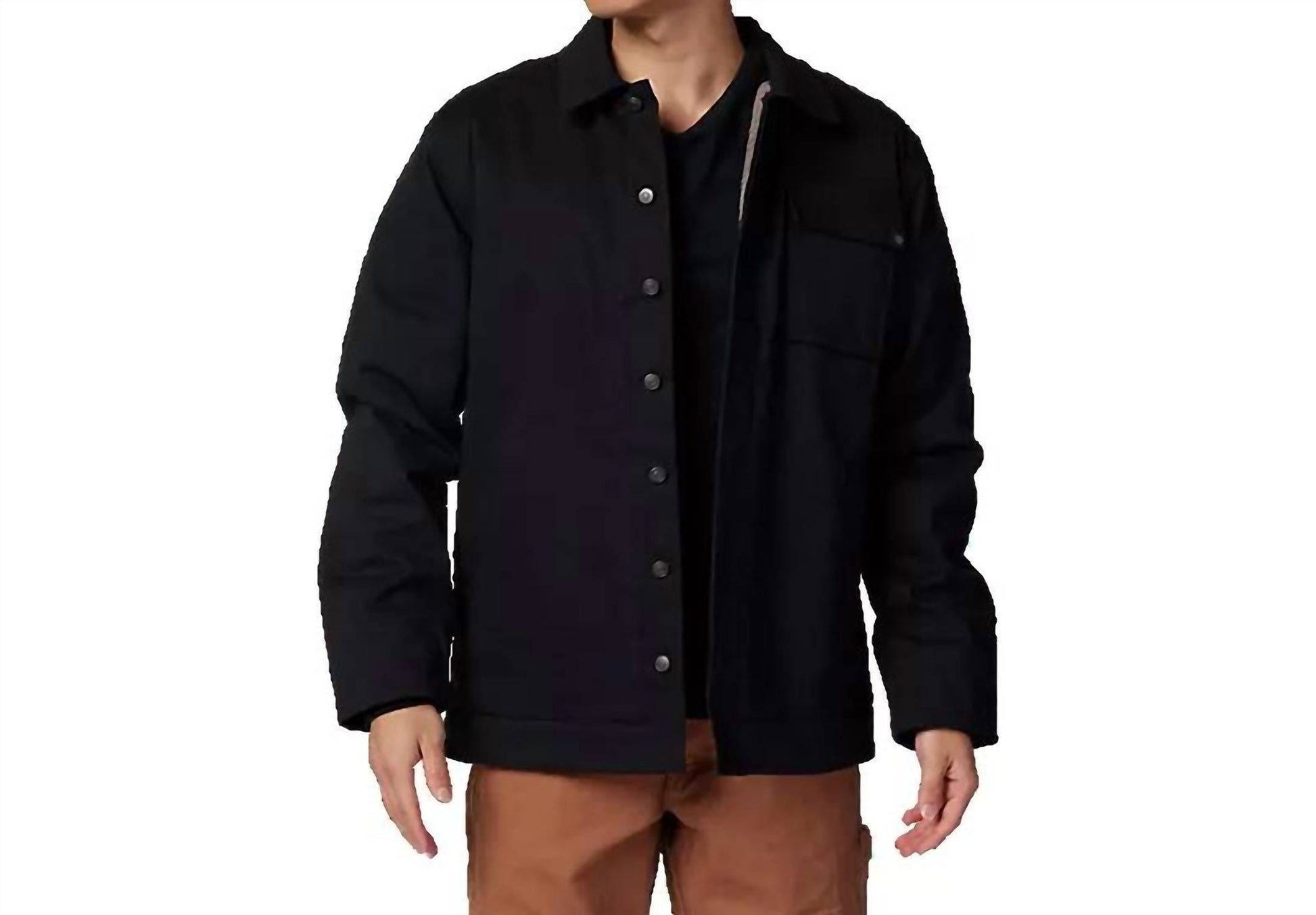 The Source Sherpa Jacket by Fox Head Inc. delivers both style and warmth for men. Crafted from a cotton blend with a twill exterior, this jacket features long sleeves and a cozy sherpa lining. Its solid black design includes generous hand-warming pockets and a classic collar. Ideal for everyday wear, this jacket requires a machine wash and should be laid flat to dry.
