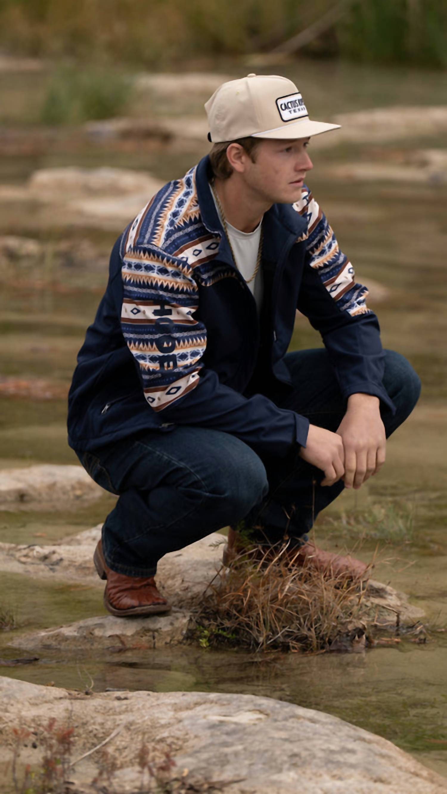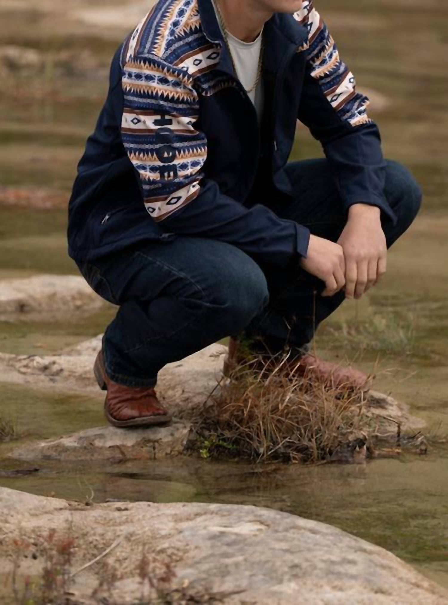Featuring long sleeves and made from 100% polyester, this geometric-patterned jacket is designed for protection against water and wind. It offers a snug fit with an adjustable waistband and cuffs, alongside practical zippered hand and hidden multifunctional pockets. Enhanced with a bonded fleece interior and a headphone holster, this jacket is your ultimate companion for comfort and convenience.