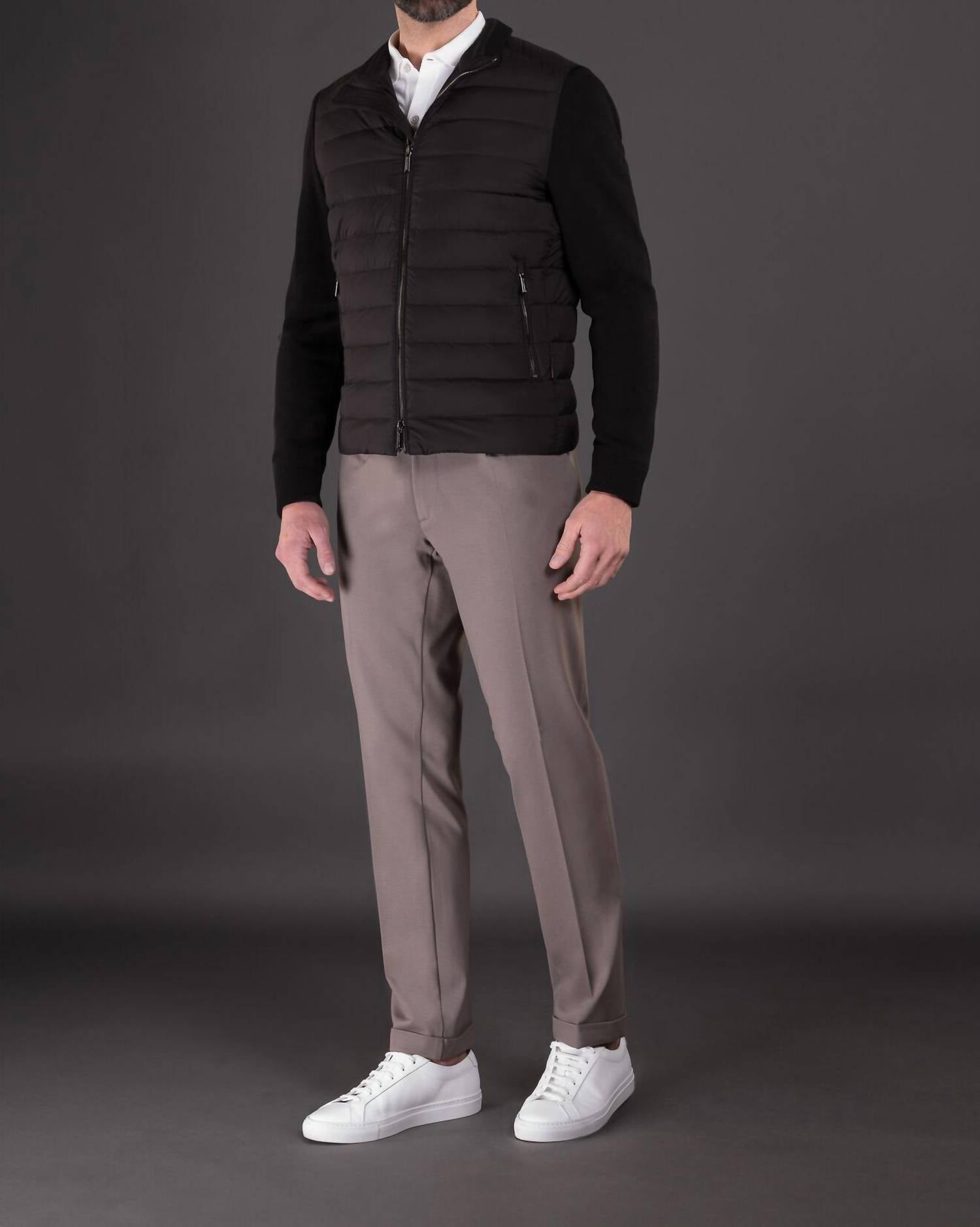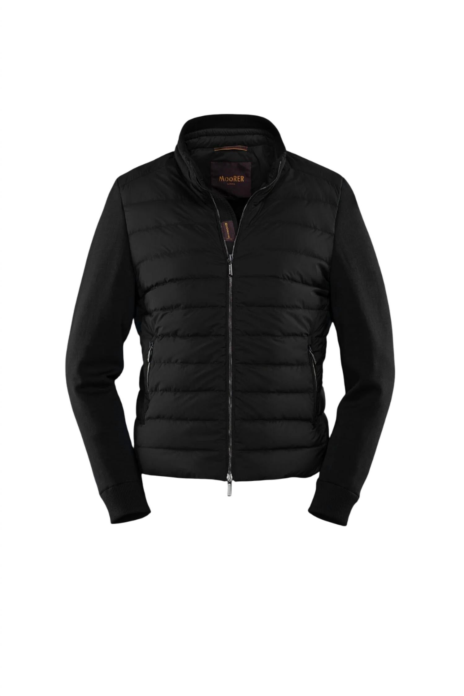 Experience the perfect fusion of style and functionality with the Cattaneo S3r Quilted Down Bomber Jacket by MooRER. Crafted from a boudin-quilted and knitted mix, this men's bomber features long sleeves lined in a plain knit for added comfort. Made from super-light, 20-denier water-repellent fabric, it boasts a silky look and goose down padding for warmth. Closure: Double-slider zip. It is complete with side pockets featuring vertical zips, ensuring practicality with a touch of elegance.