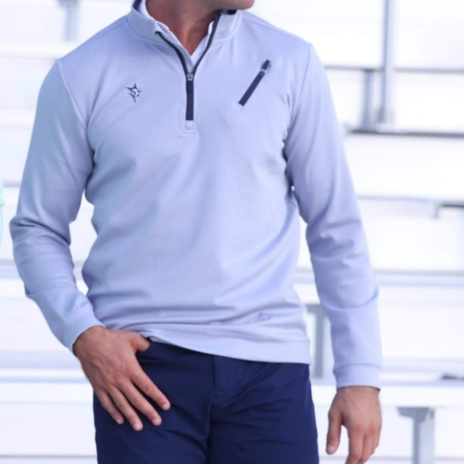 Stay ahead in style with the Oceanside Performance Jacket by White Water Life, crafted for the modern man. This long sleeve grey jacket features a mockneck design and a practical chest pocket, offering both functionality and flair. Made from technical midweight performance fabric, it provides a soft interior and a smooth exterior with four-way stretch for unmatched comfort. Details include an embroidered left chest logo and a silicone icon logo on the back neck, with a sleek, reflective logo enhancing the zipper.