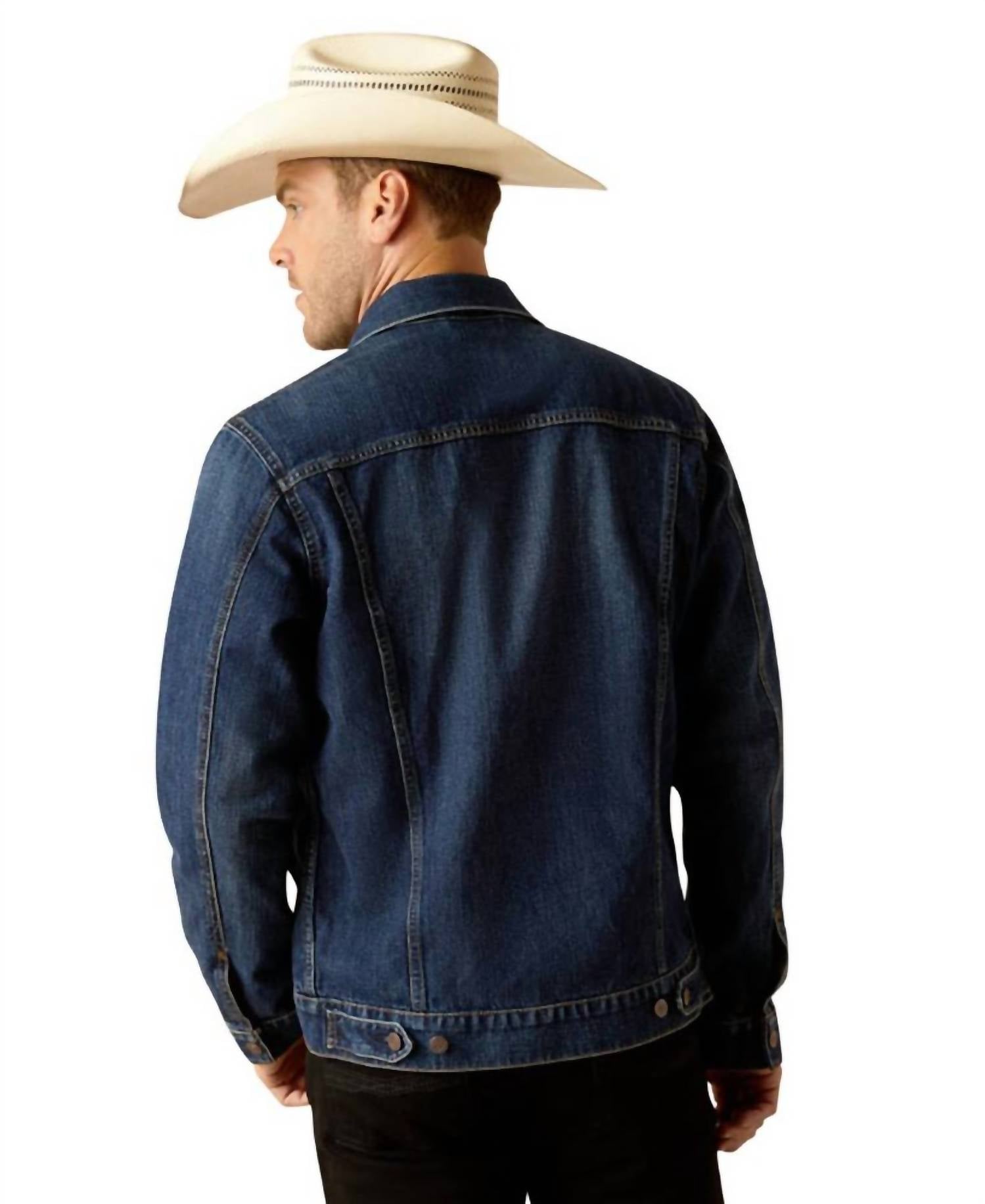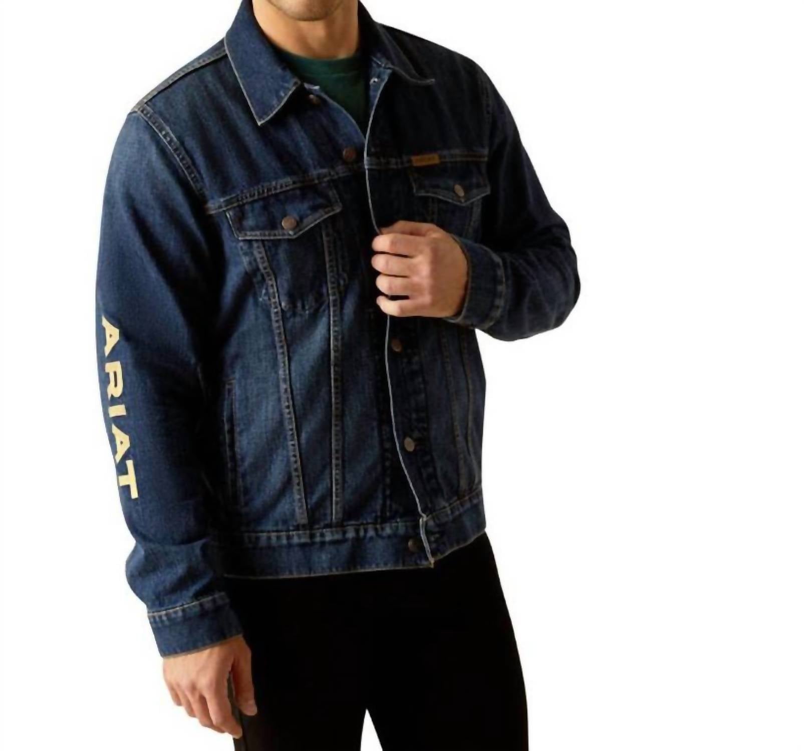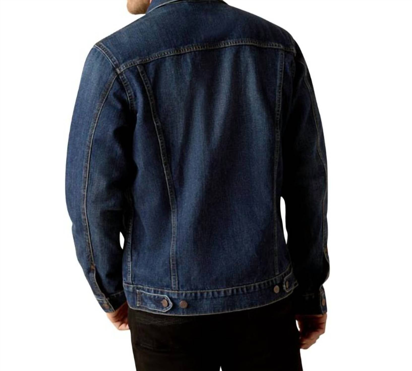This men's denim trucker jacket offers a perfect balance of style, functionality, and durability. Designed with a classic front button closure and snap cuffs, it provides both ease of wear and a secure fit to keep you warm on cooler days. Double front pockets with snap closures offer convenient storage for your essentials. A bold embroidered detail down the sleeve adds a distinctive touch, making this jacket a standout piece for casual outings or everyday wear.
