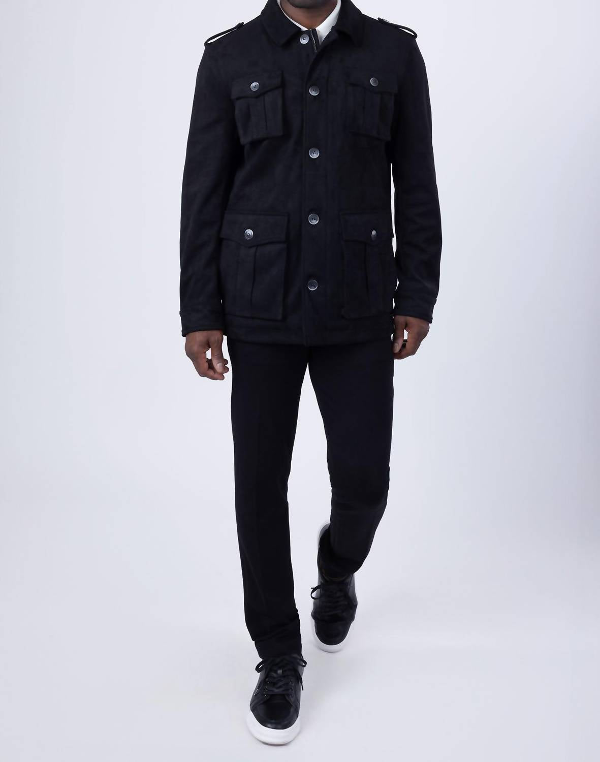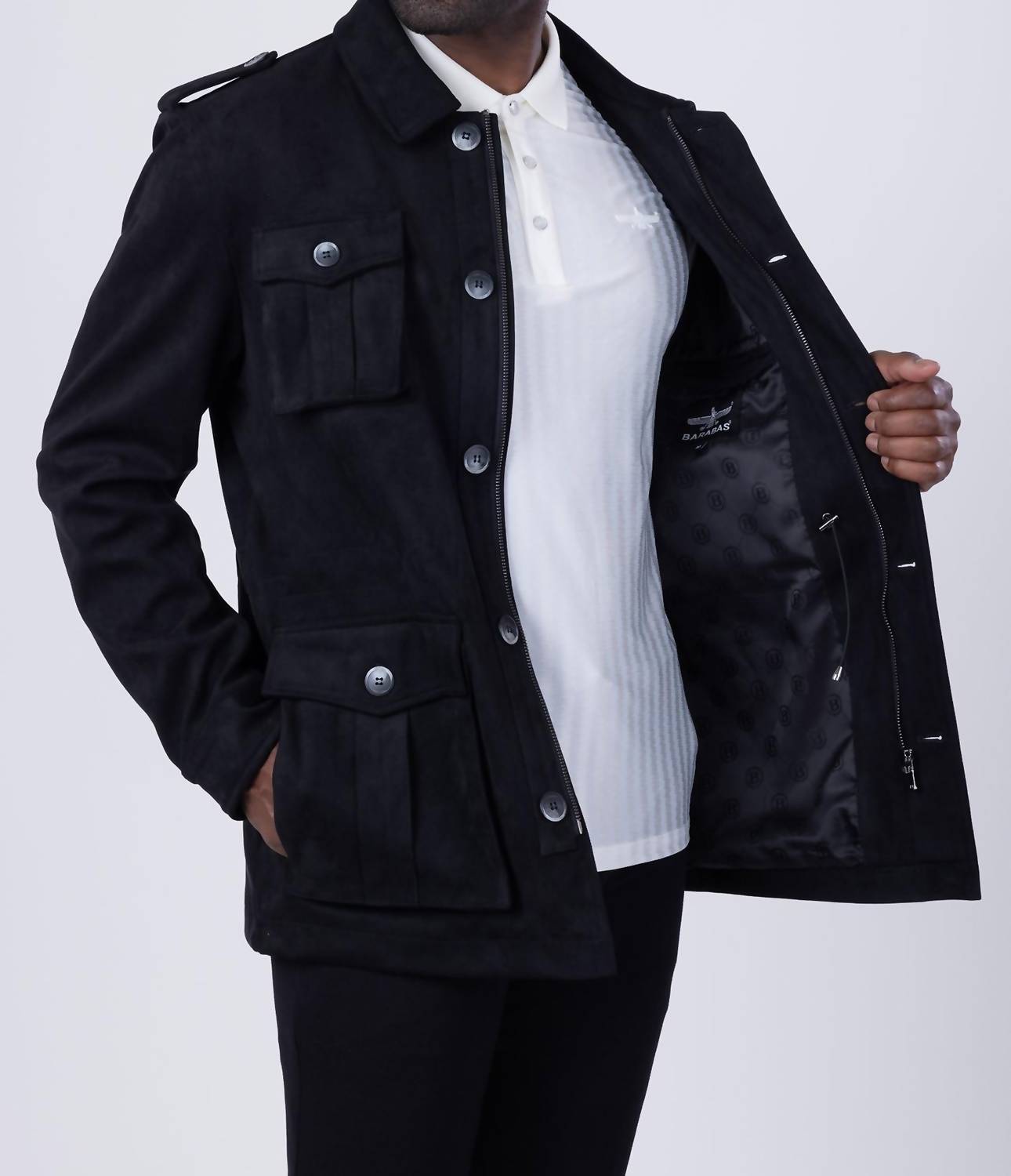 Experience the luxury of the Quarvis Trench Coat by Barabas, crafted for the fashion-forward traveler. This black coat features long sleeves and a full front zipper closure with additional four-button closure on multi-pockets, embodying a sleek yet practical design. Made from 90% regenerated fiber and 10% spandex, it boasts a soft velvet texture with a polyester lining to ensure windproof comfort. For best care, dry cleaning is recommended to maintain its premium quality.