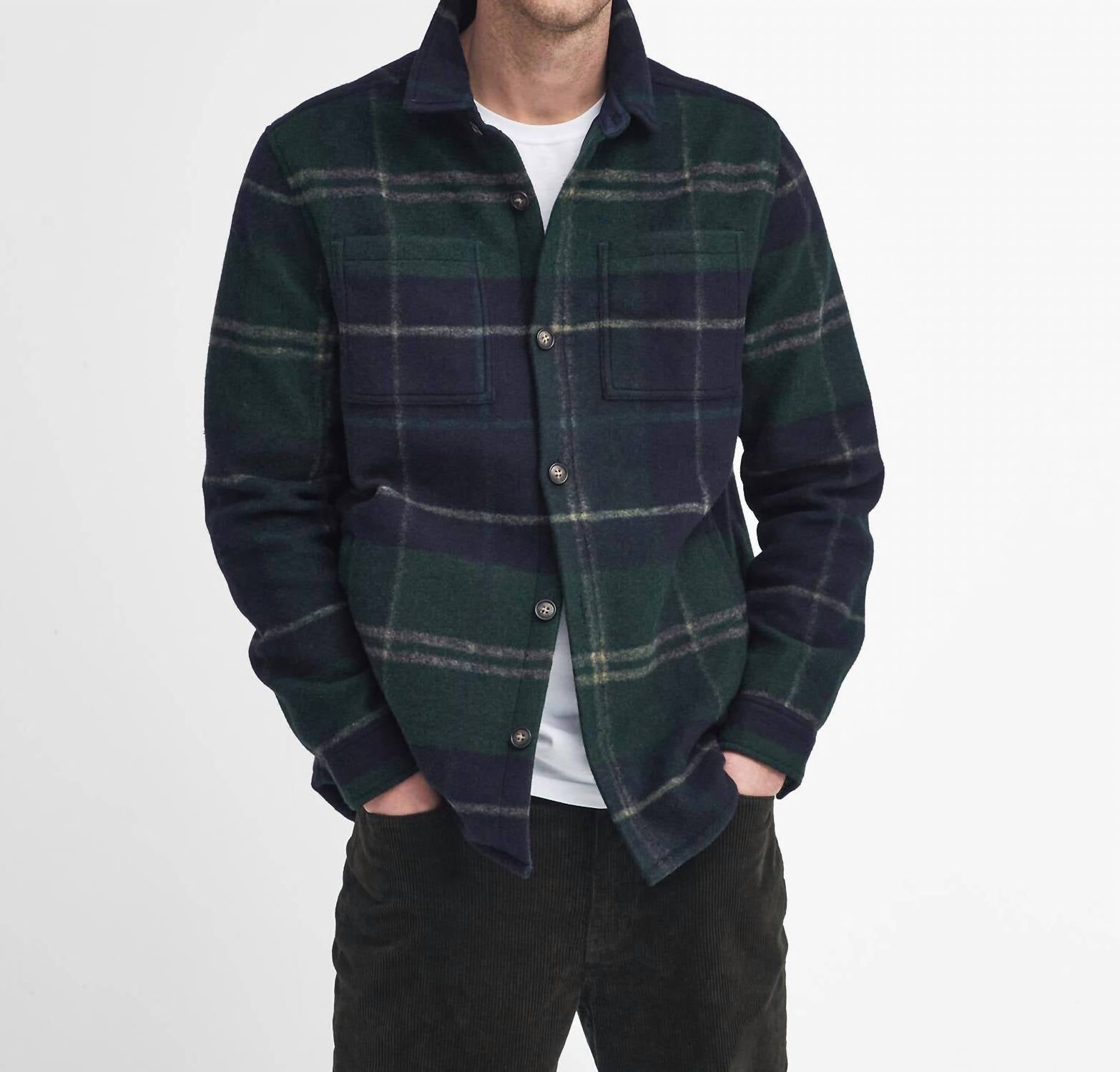 Add a touch of classic style to your autumn/winter wardrobe with the Barbour Chapter Tailored Check Overshirt in Green Loch Tartan. This long sleeve overshirt, crafted from 100% polyester, combines the sophistication of a shirt with the functionality of a lightweight jacket. It features a button closure and practical pockets, perfect for layering over T-shirts or sweatshirts. Care instructions: Machine wash.
