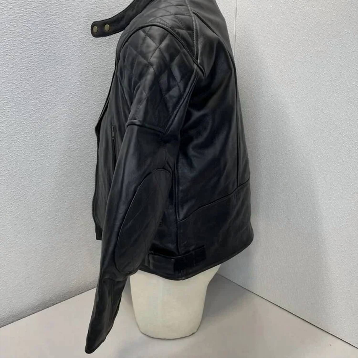 Elevate your style with the Men's Leather Motorcycle Jacket by Born to Race USA, a blend of rugged elegance and functionality. This jacket features a solid black leather construction with long sleeves, a zip front closure, and zippered pockets, complemented by a snap collar and shoulder accents. Made in Pakistan, its quilted inner lining offers exceptional comfort. Outershell composition: 100% Leather, Lining: 100% Polyester; clean by specialist.