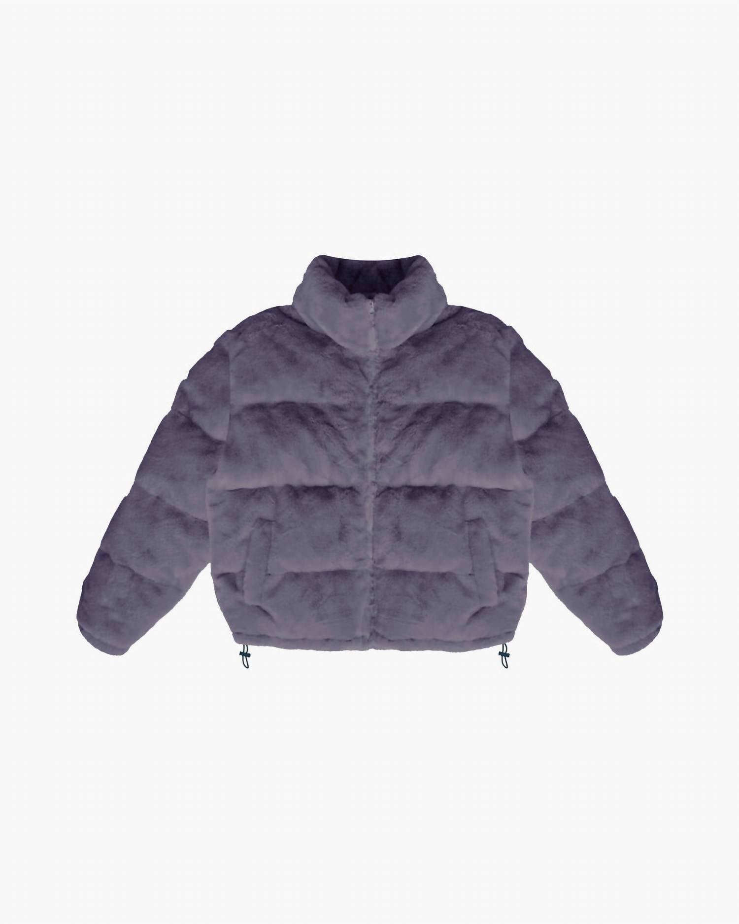 Introducing the EPTM Subzero Puffer Jacket, a must-have for winter with its stylish grey monochrome design. Featuring long sleeves and a cozy textured polyester construction, this jacket offers warmth with its soft poly filling and faux fur trim. It includes two welt pockets and an adjustable hem for practicality, while the front zip closure and a rubber logo stamp add sleek details. Care: Machine wash. Style Number: EP11213.