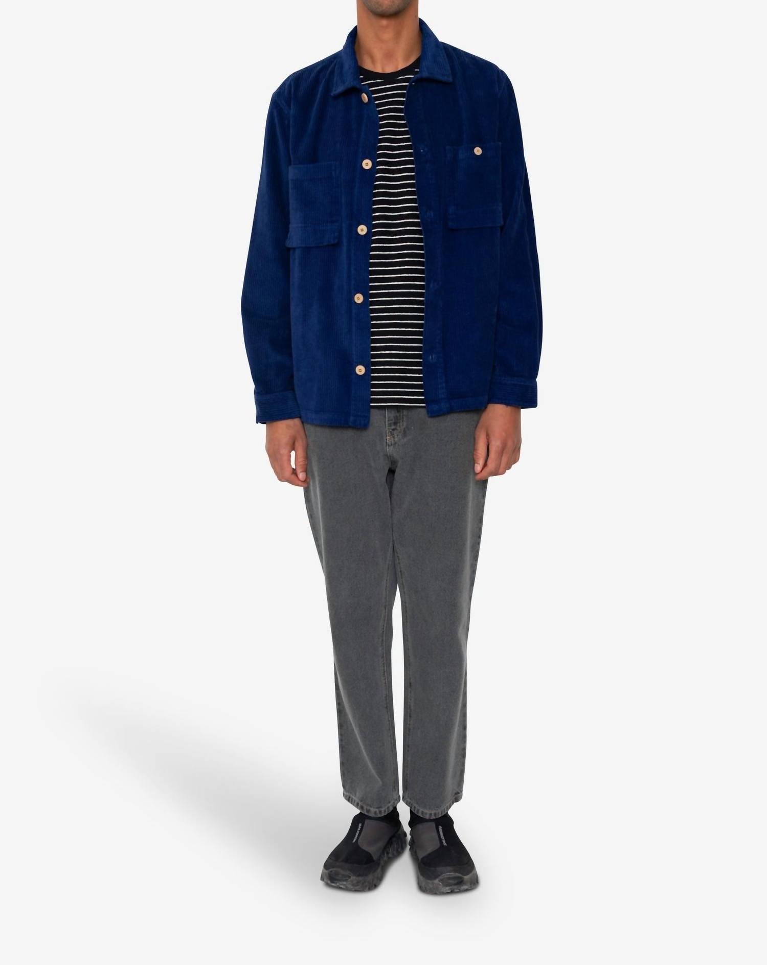 Introducing the Linen Patch Overshirt by Folk, designed in a rich navy hue for the modern man. This lightweight shirt jacket features long sleeves and textured details, with an emphasis on the brand's relaxed yet functional aesthetic. Crafted from a blend of 55% linen and 45% cotton, it includes two practical chest pockets and a button closure, perfect for travel and winter occasions. Experience the minimalist charm and contemporary craftsmanship of Folk in this versatile piece.