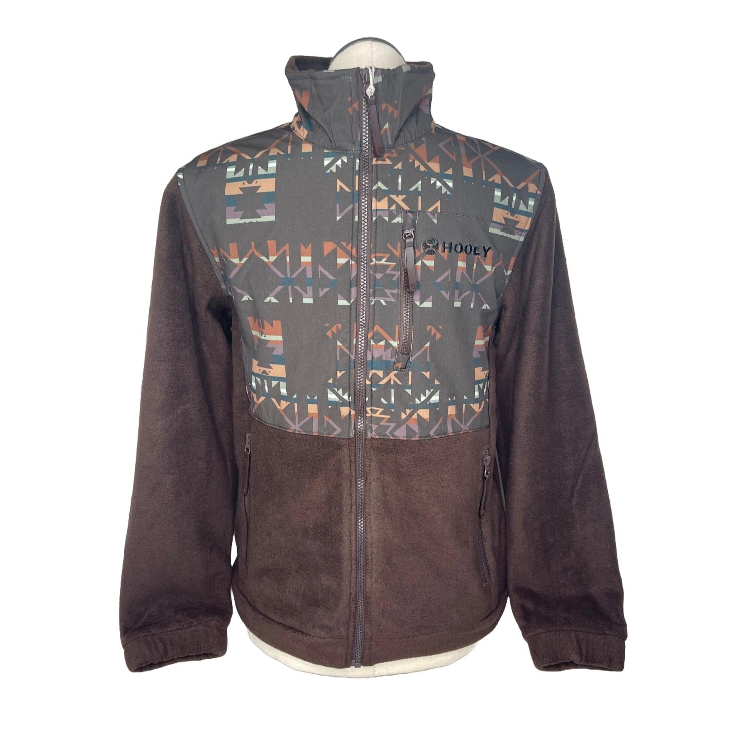 Introducing the Tech Full Zip Jacket by HOOEY, perfect for your next vacation with its striking brown/blue Aztec pattern. This men's lightweight jacket offers long sleeves and a practical zip closure for easy wear. Its mockneck design adds a touch of style while providing additional warmth. Care for this patterned essential is straightforward with machine wash instructions.