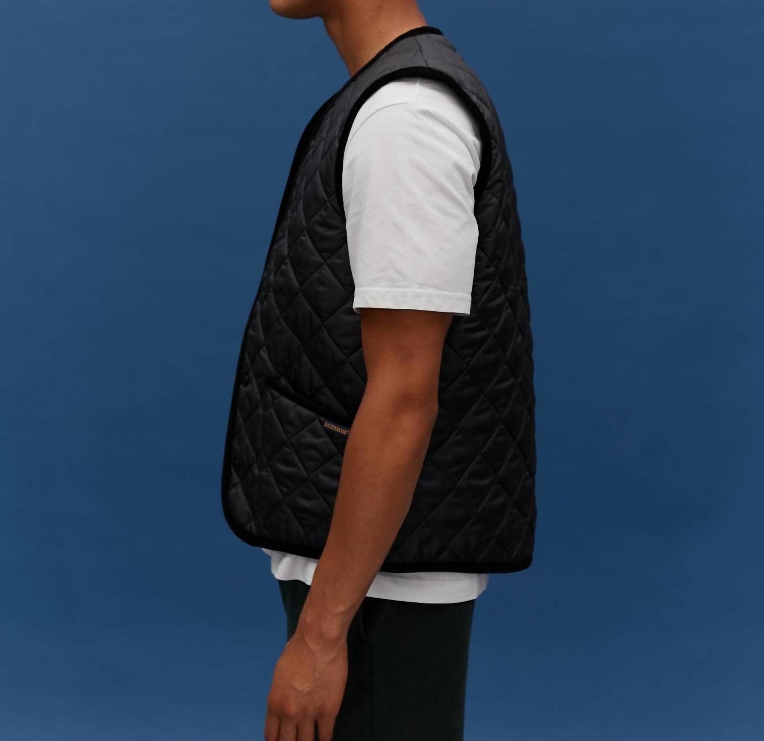 This versatile gilet is designed for effortless layering, functioning as either an outer piece or a liner for year-round wear. It’s crafted from recycled polyester quilted in a classic 2-inch diamond pattern, with lightweight wadding that provides warmth without adding bulk. Durable organic cotton corduroy binding reinforces the edges, while two patch pockets and an internal chest pocket offer practical storage. Finished with secure press-stud fastening, it delivers a clean, functional, and durable design.