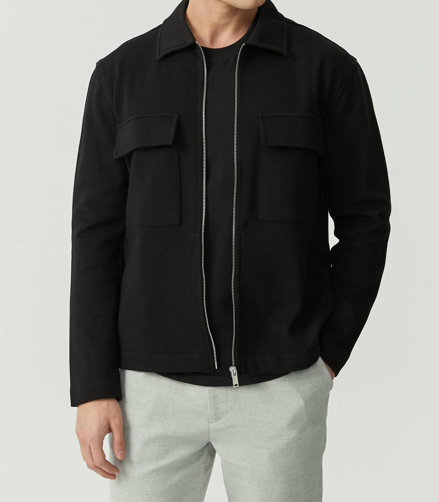 Discover the Mavi Zip Front Jacket, perfect for a stylish Thanksgiving getaway or any fall occasion. Made from a comfortable blend of 90% cotton and 10% polyester, this black lightweight jacket features long sleeves and a classic collar. Its solid monochrome design is complemented by practical pockets and a button closure, ideal for versatile wear. Easy to care for, simply machine wash as needed.