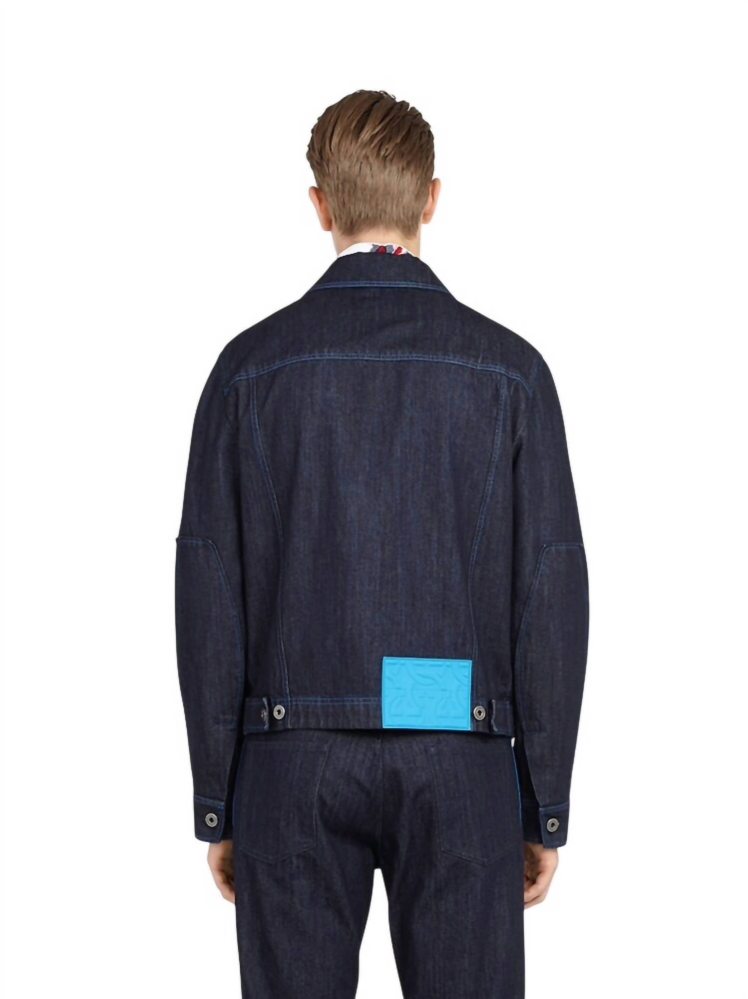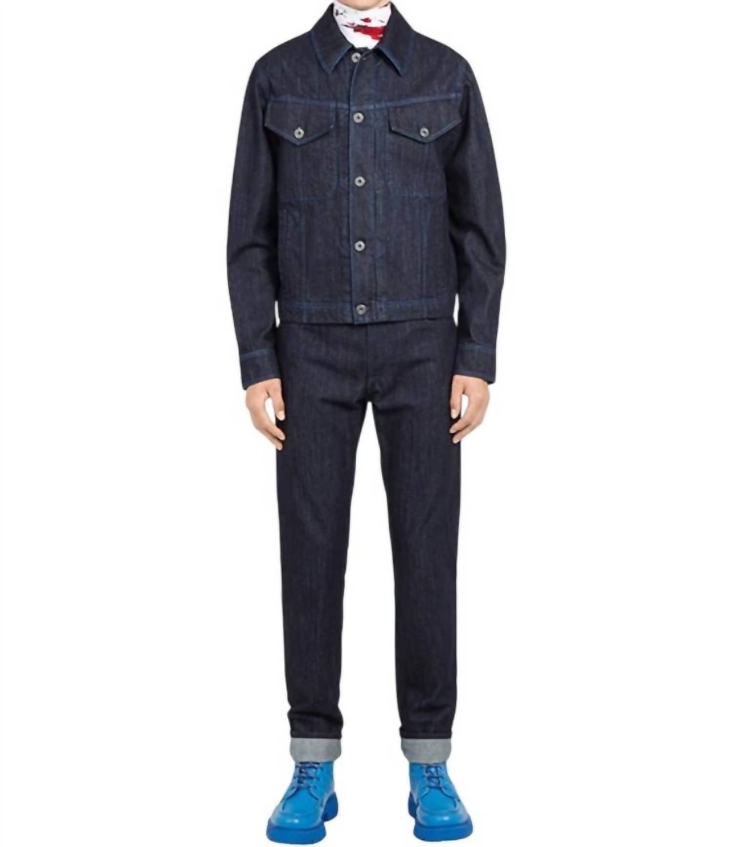 Elevate your style with the Men's Denim Jacket by Salvatore Ferragamo, a must-have in every capsule wardrobe. Featuring long sleeves and crafted from 100% cotton, this jacket is made of Japanese no-fade denim, offering a refined intense hue. Originating from Italy, it has a button closure and flap pockets, adding functionality to its style. Ideal for travel and perfect for the transition seasons, it embodies quiet luxury with its classic collar and contrasting stitching.