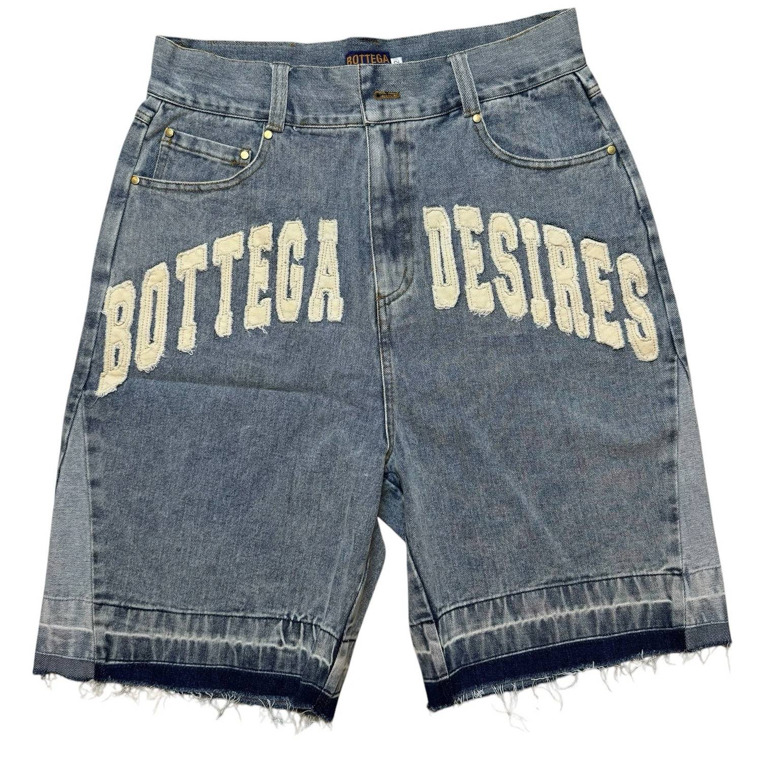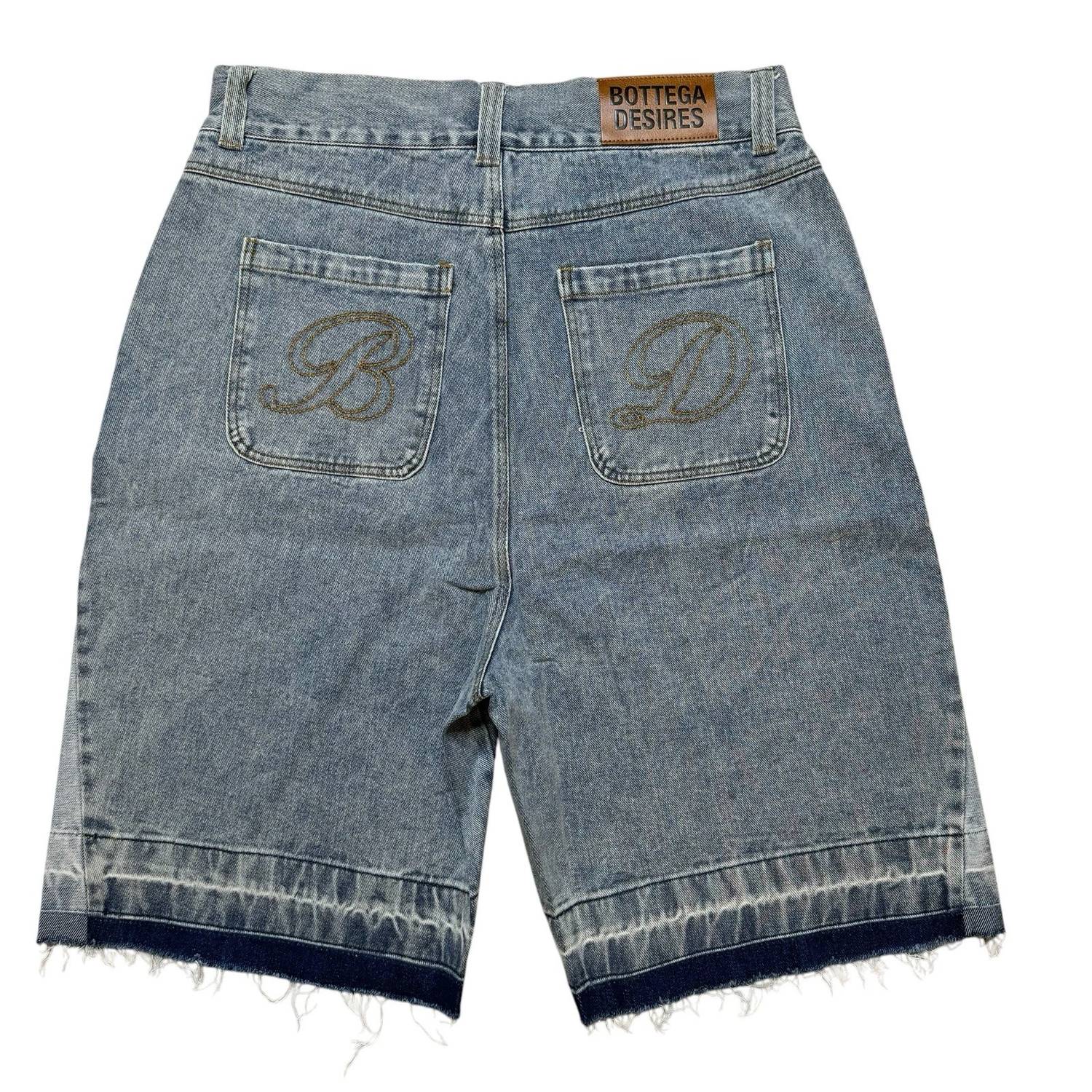 Bottega Desires - Men's Embroidered Appliqué & Frayed Denim Shorts