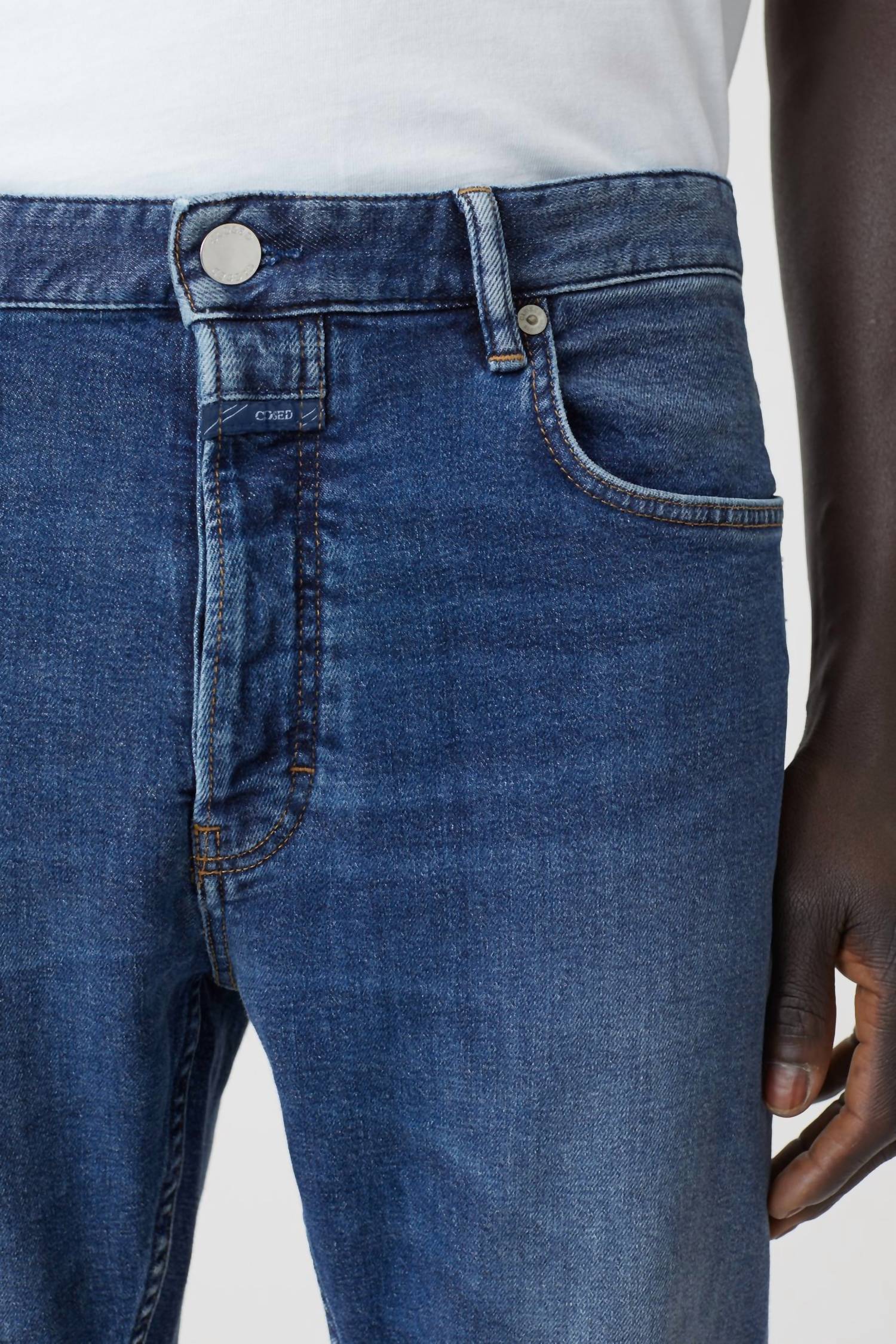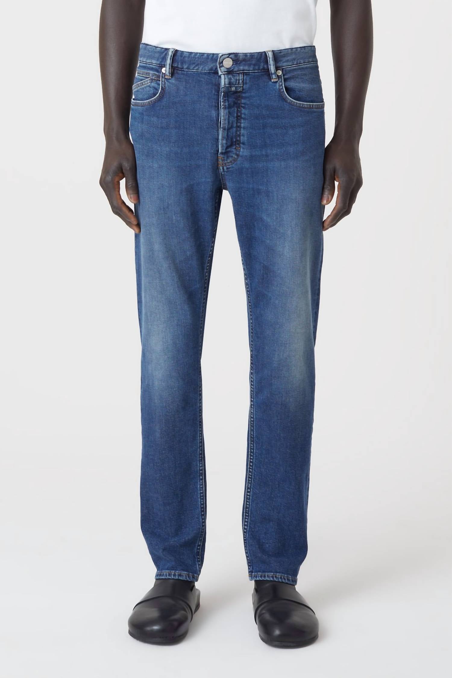 Expertly crafted using medium-weight stretch denim and recycled cotton, the Oakland Straight jeans are designed for a slim, mid-waist fit with a straight leg. Feels like: strong (13 oz.) and compact denim (stretch grade 1 of 4: rigid denim). Looks like: dark wash with used effects on the pocket edges and silver-colored metal details, Slim fit / mid waist / straight leg. 60% Cotton (organic), 24% Cotton (recycled), 16% Cotton. Made in Italy. Inner leg length: 32.3” (size 32). Front rise: 11.4".