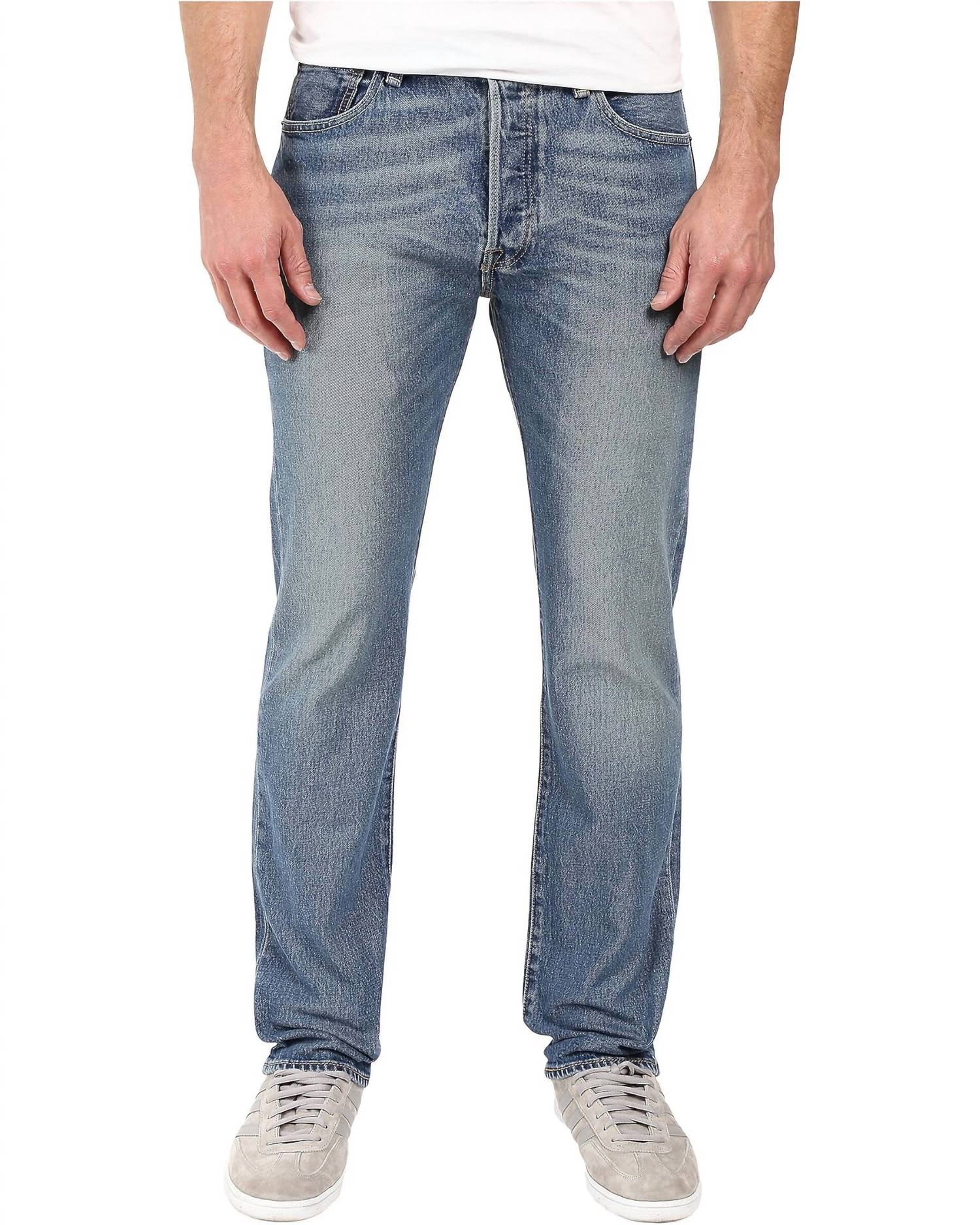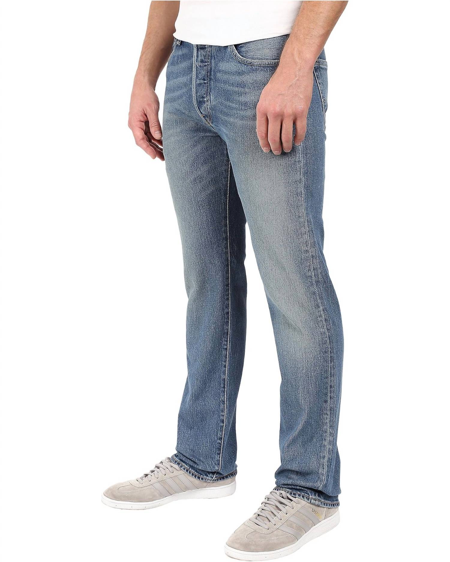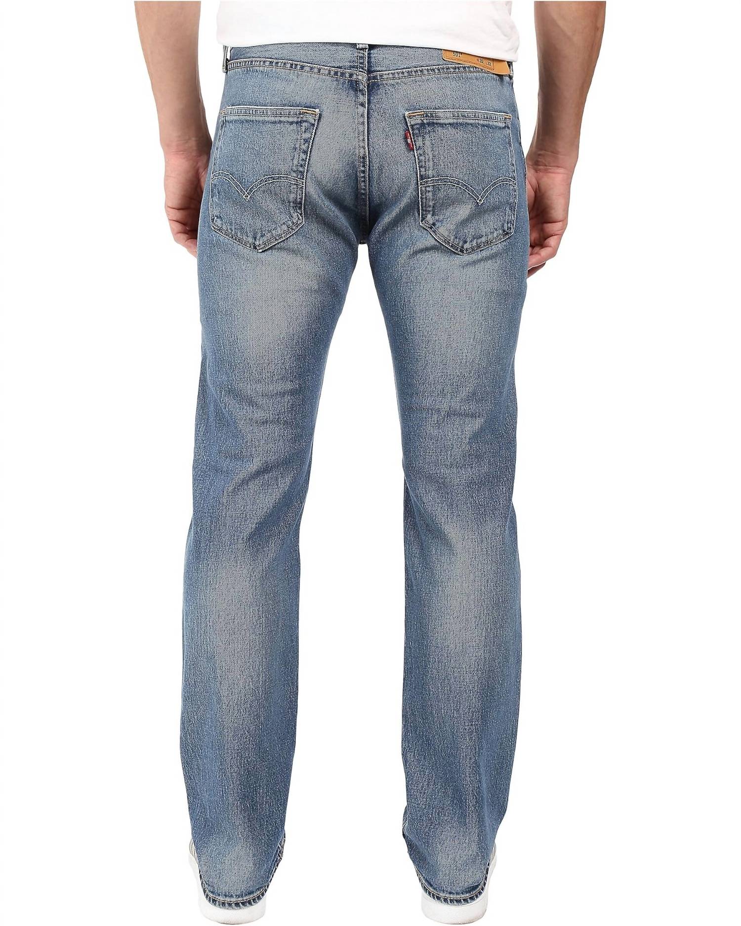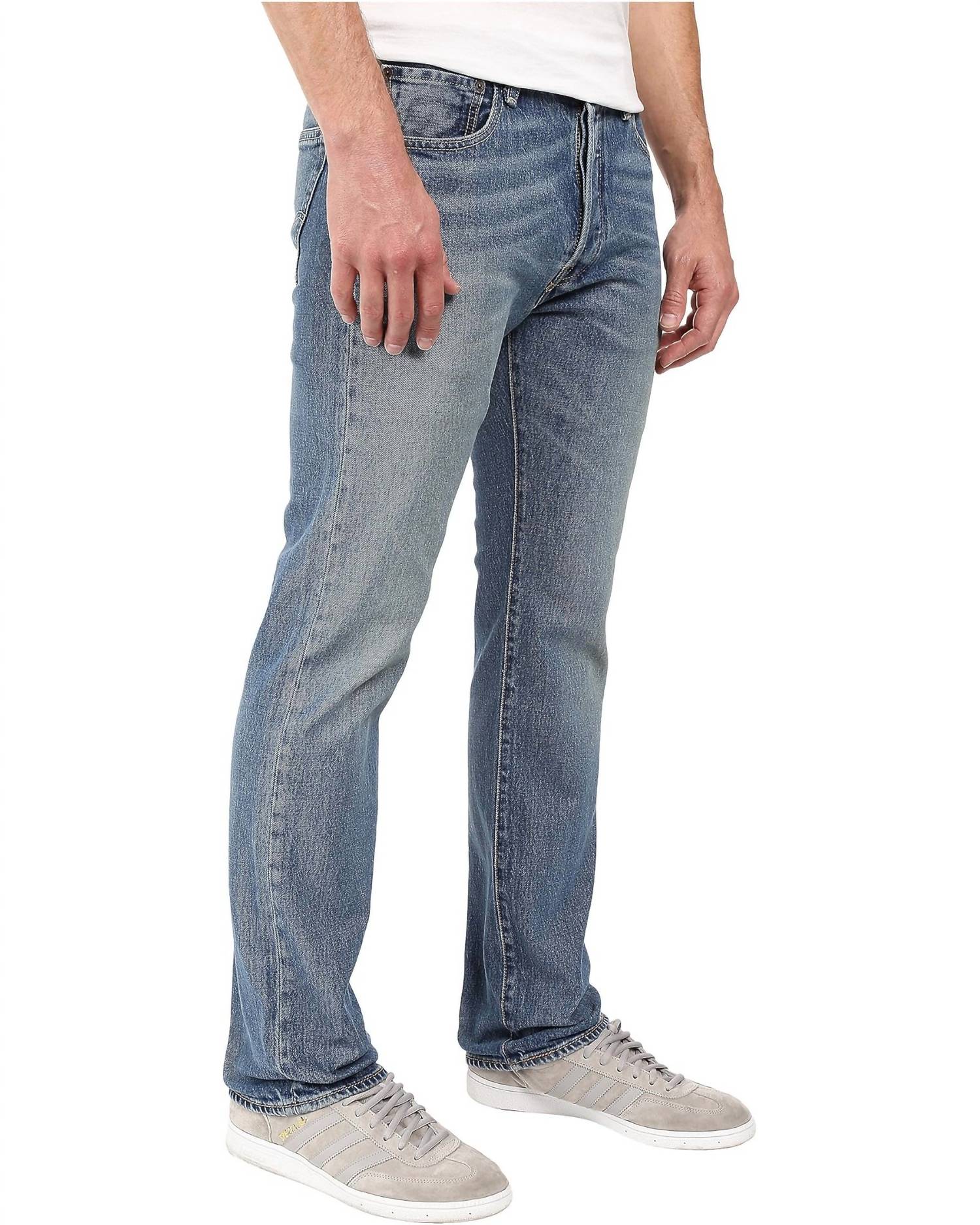 Introducing the Levi's 501 Original Jean in the stylish shade "The Ben," a must-have for any denim enthusiast. Crafted from durable Denim, these men's jeans feature a classic five-pocket design with a regular fit through the thigh and a straight leg for a timeless look. The mid-rise waist and zip closure add to the comfort and practicality, while the medium wash offers a touch of 90s fashion perfect for fall. Care instructions: Machine wash.