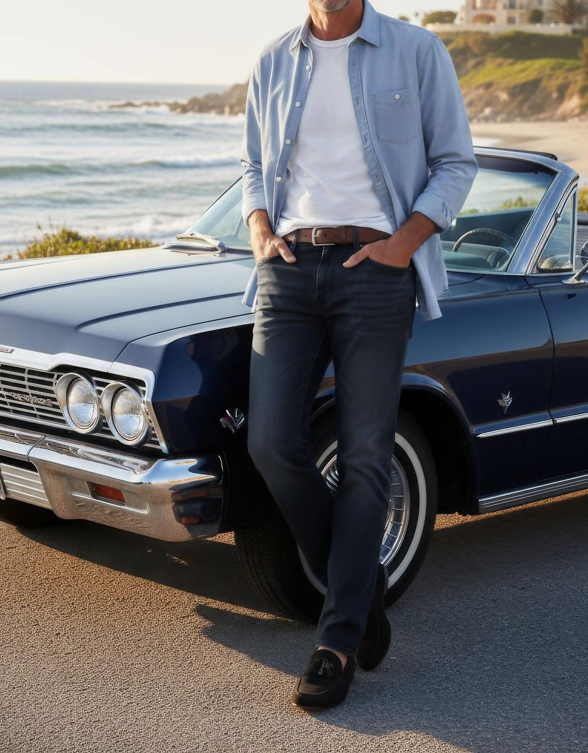Introducing the Lorient Jeans by BARABAS in a stylish dark blue, perfect for a dinner party. These men's slim-fit jeans feature a straight leg style crafted from a cotton blend with a composition of 60% Cotton, 24% Modal, 13% Lyocell, and 3% Spandex for a stretch and strong, firm denim experience. Designed with a slightly washed look and complete with a zipper and button closure, they offer excellent full stretch recovery and durable wash capabilities. With a classic inseam of 32 inches and practical front and back pockets, these jeans are as functional as they are fashionable. Machine wash.