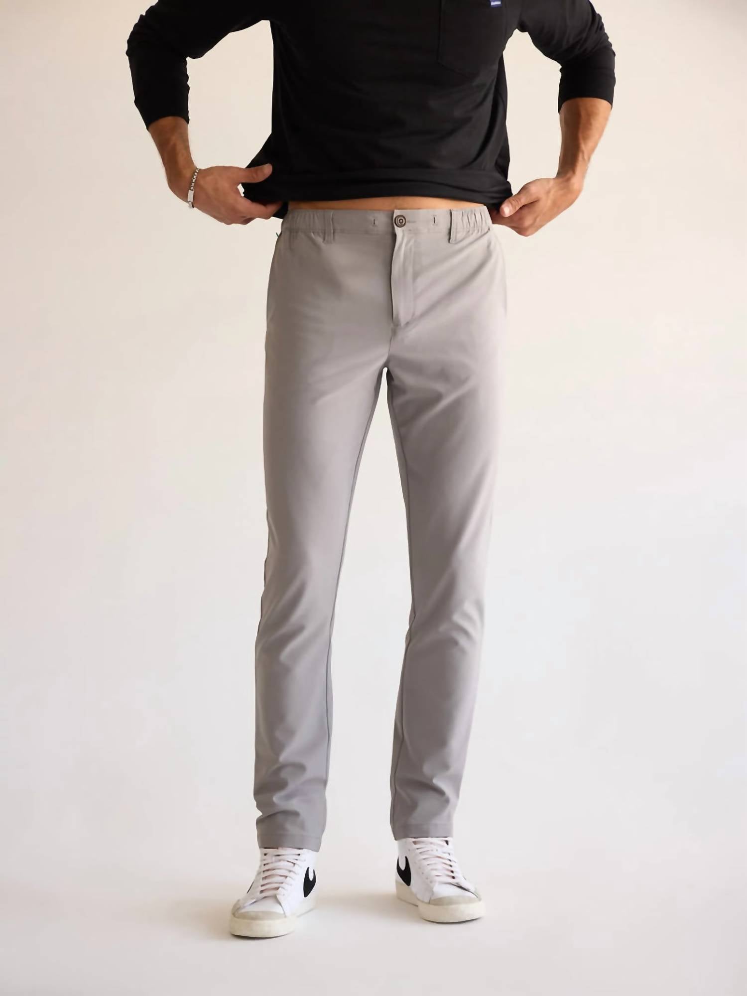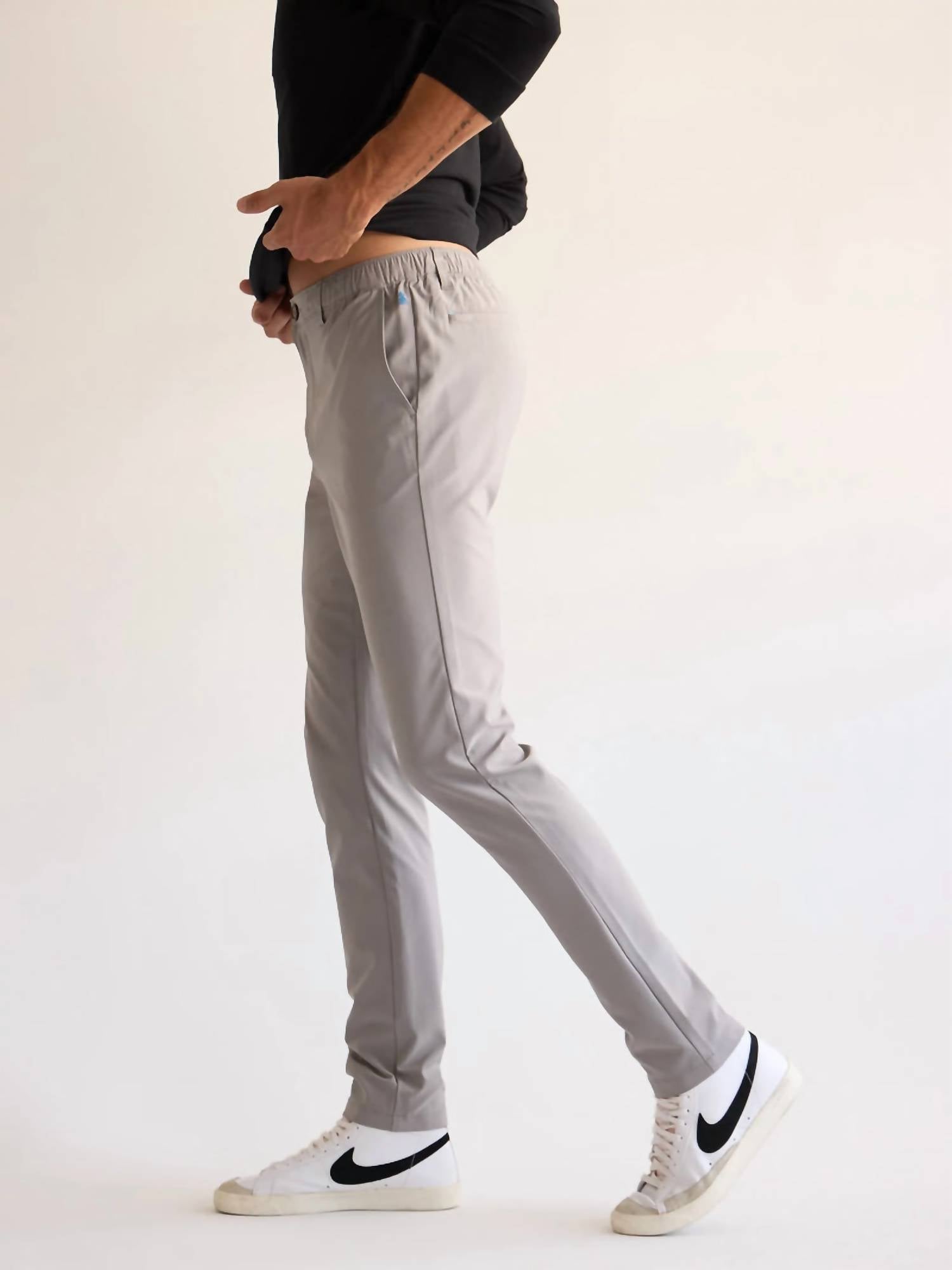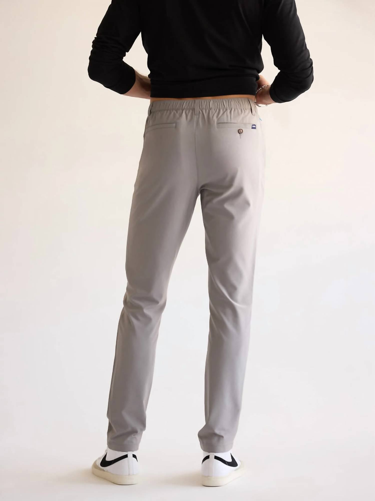 These pants combine performance and comfort with a tapered fit and lightweight, 4-way stretch fabric. They feature an elastic waistband with internal and external drawstrings, a secure zipper pocket, and are made from anti-microbial, wrinkle-resistant, water-resistant, and anti-rip material for durability and easy care.