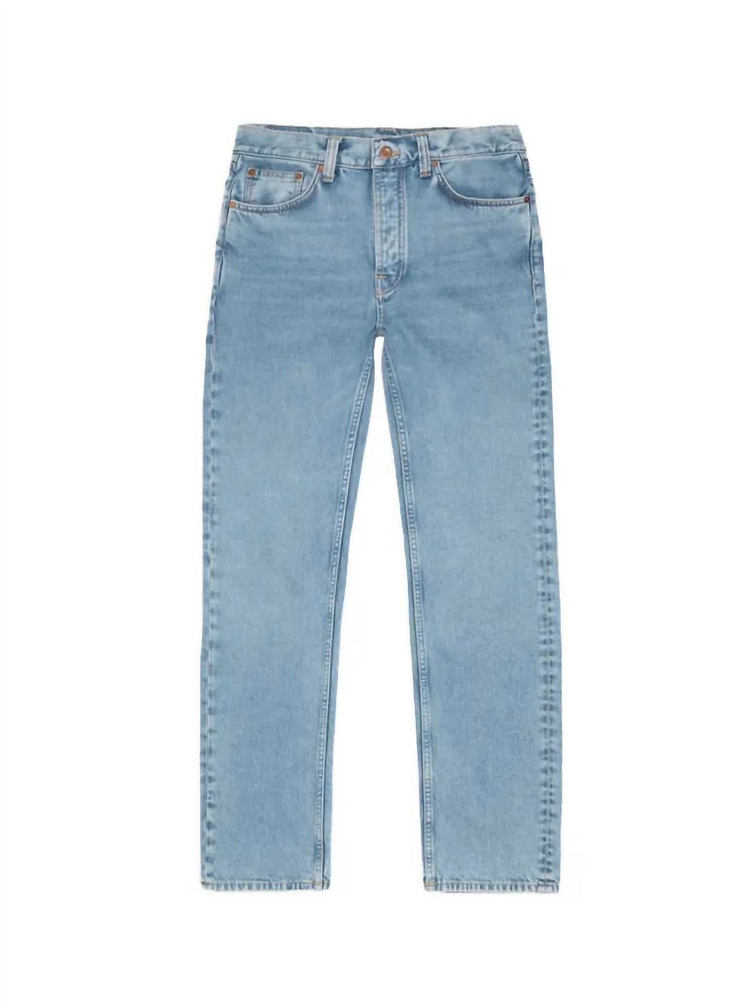 Perfect for streetwear enthusiasts. High-waisted jeans offer a regular fit with a classic straight leg, made from durable 14.3 oz. rigid denim. Crafted from 100% organic cotton. Feature a button fly closure with vintage-inspired copper trims and Light Tobacco threads for added character. Care instructions suggest machine washing and tumble drying for convenience, making these jeans an ideal traveling companion for the fall season.