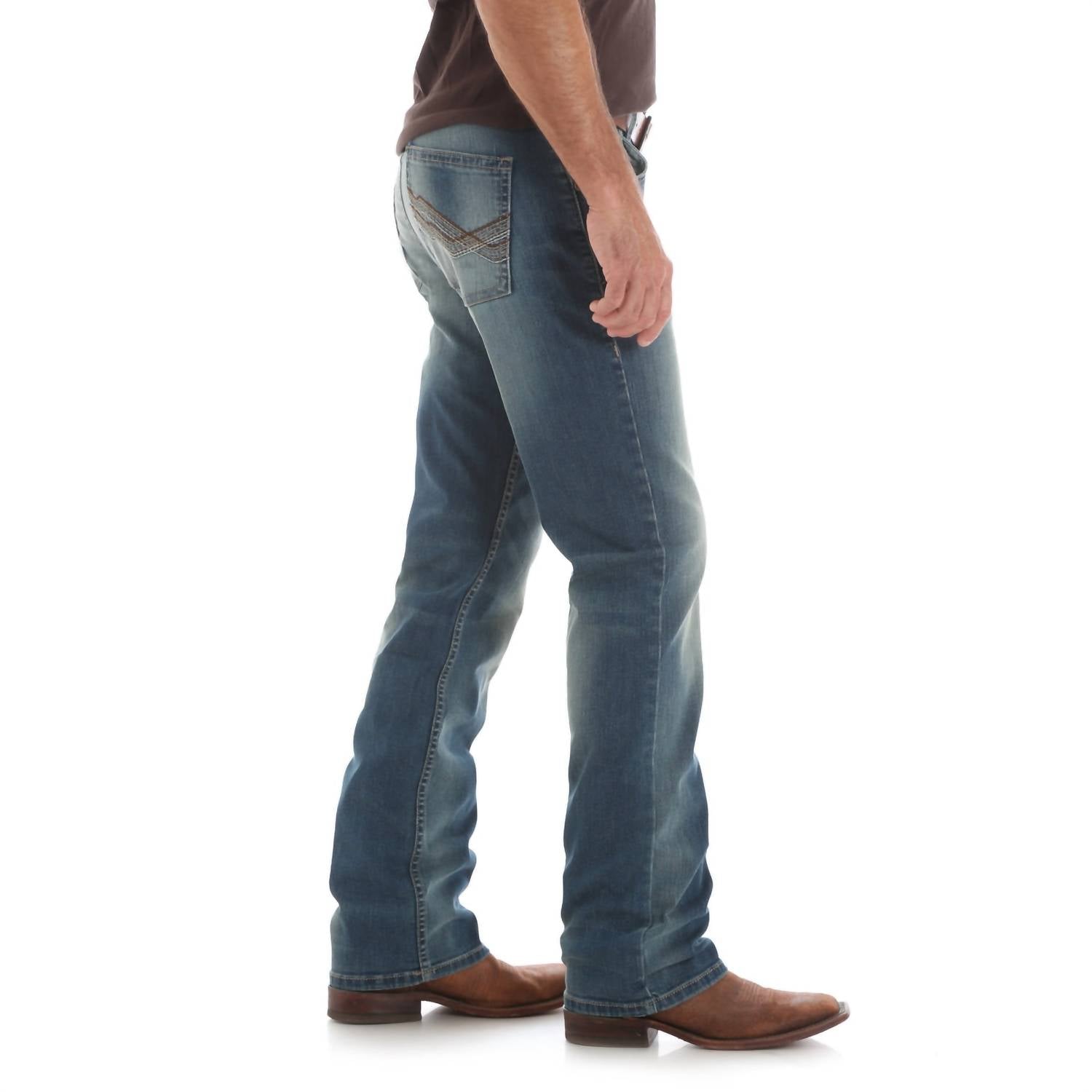 Introducing the Retro Slim Fit Straight Leg Jeans by Wrangler, your go-to choice for a vintage-inspired look. These Cottonwood-colored jeans offer a slim fit with a low-rise waist, featuring a textured pattern that complements its medium wash. Crafted from a comfortable cotton blend, they provide a slim seat and thigh with a straight leg and are finished with a convenient button closure. Perfect for the spring season and holiday gatherings, these jeans combine casual style with modern comfort, ideal for any festive occasion.