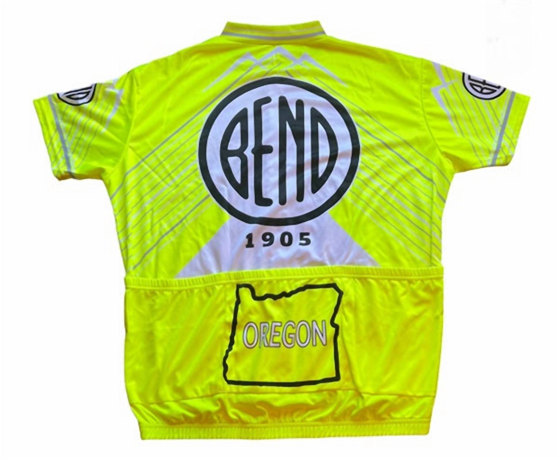 The Men's Bend Oregon Cycling Jersey by It's In My Heart is a must-have for cycling enthusiasts. Featuring short sleeves and crafted from cool and comfortable polyester with moisture-wicking qualities, this jersey ensures a dry ride. With its full-length zip closure and 4-way stretch mesh side panels, it offers ease of movement and ventilation. Designed in a striking Fluro Yellow color, it includes 3 rear pockets for storage convenience.