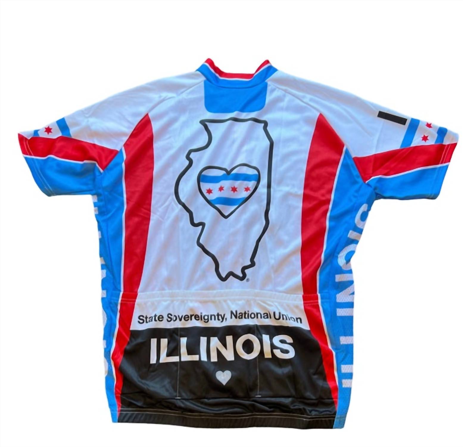 Embrace performance and style with the Men's Cycling Jersey by It's In My Heart, tailored for optimum comfort. This short sleeve jersey in the distinctive Illinois color features a mockneck design and is crafted from moisture-wicking polyester for cool and dry rides. Equipped with 4-way stretch mesh side panels and three rear pockets, it offers both flexibility and functionality. Closure: Full-length zip closure for easy wear.