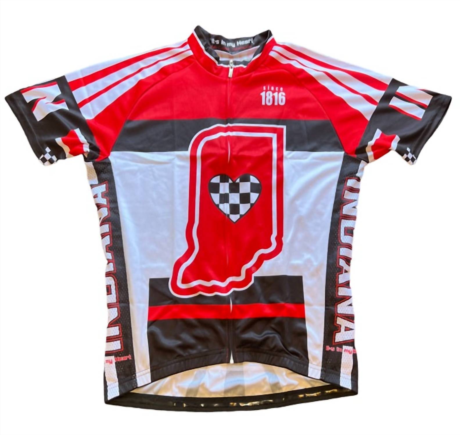 Discover the Men's Cycling Jersey by It's In My Heart, combining cool comfort with performance thanks to its moisture-wicking polyester fabric. Designed with short sleeves and 4-way stretch mesh side panels, this jersey ensures flexibility and breathability for activewear. Featuring a convenient full-length zip closure and three rear pockets, it offers both functionality and style. Closure: Zip Closure.