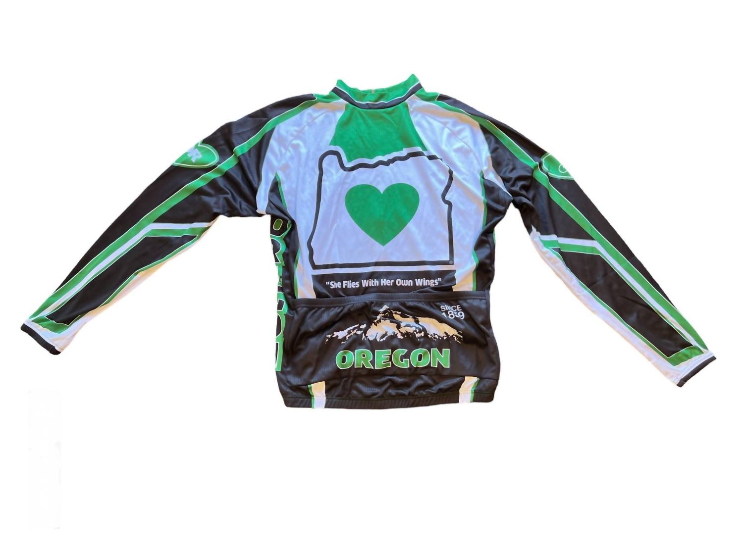 Experience style and functionality with the Men's Long Sleeve Cycling Jersey by It's In My Heart, featuring a sleek Oregon color. This jersey offers cool and comfortable wear with moisture-wicking fabric and 4-way stretch mesh side panels for maximized flexibility. It includes practical elements like a full-length zip closure and three rear pockets for convenient storage. Perfect for activewear enthusiasts seeking performance and comfort.