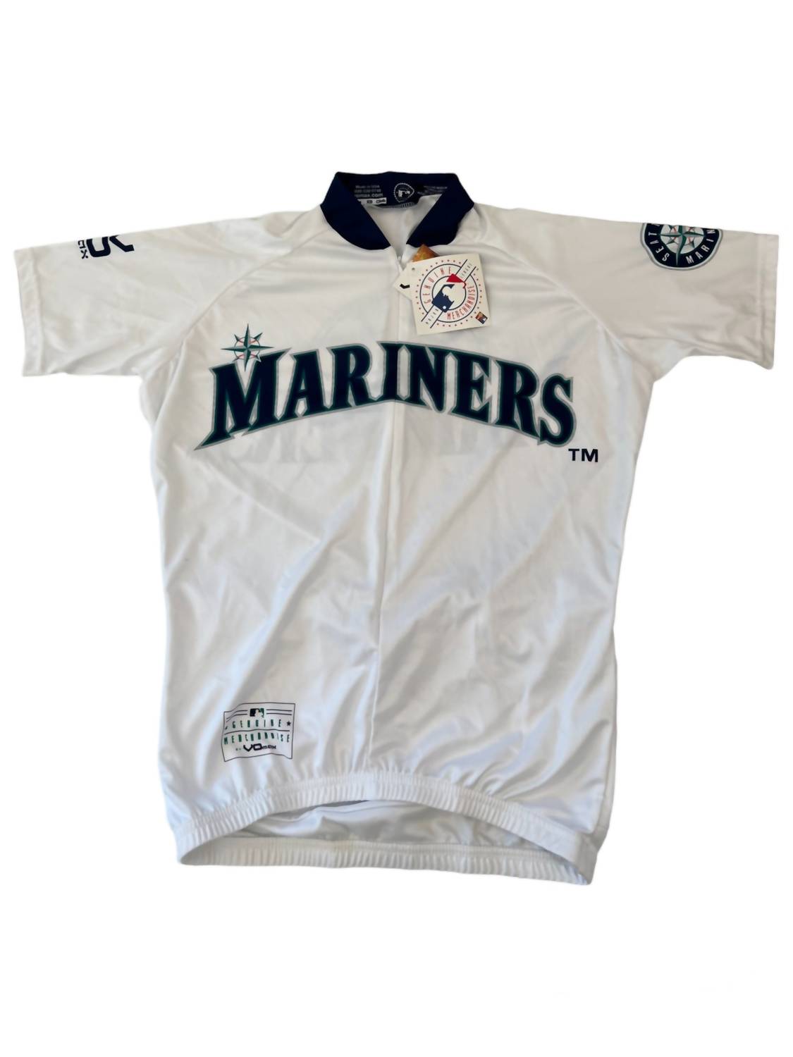 Elevate your cycling experience with the Men's Cycling Jersey by VOmax, crafted with care in the USA. This short sleeve jersey in a unique Seattle Mariners color features a mockneck and is made from premium Microdry fabric, ensuring exceptional comfort and fit. It includes three rear pockets for convenience and a zip closure for easy wear.