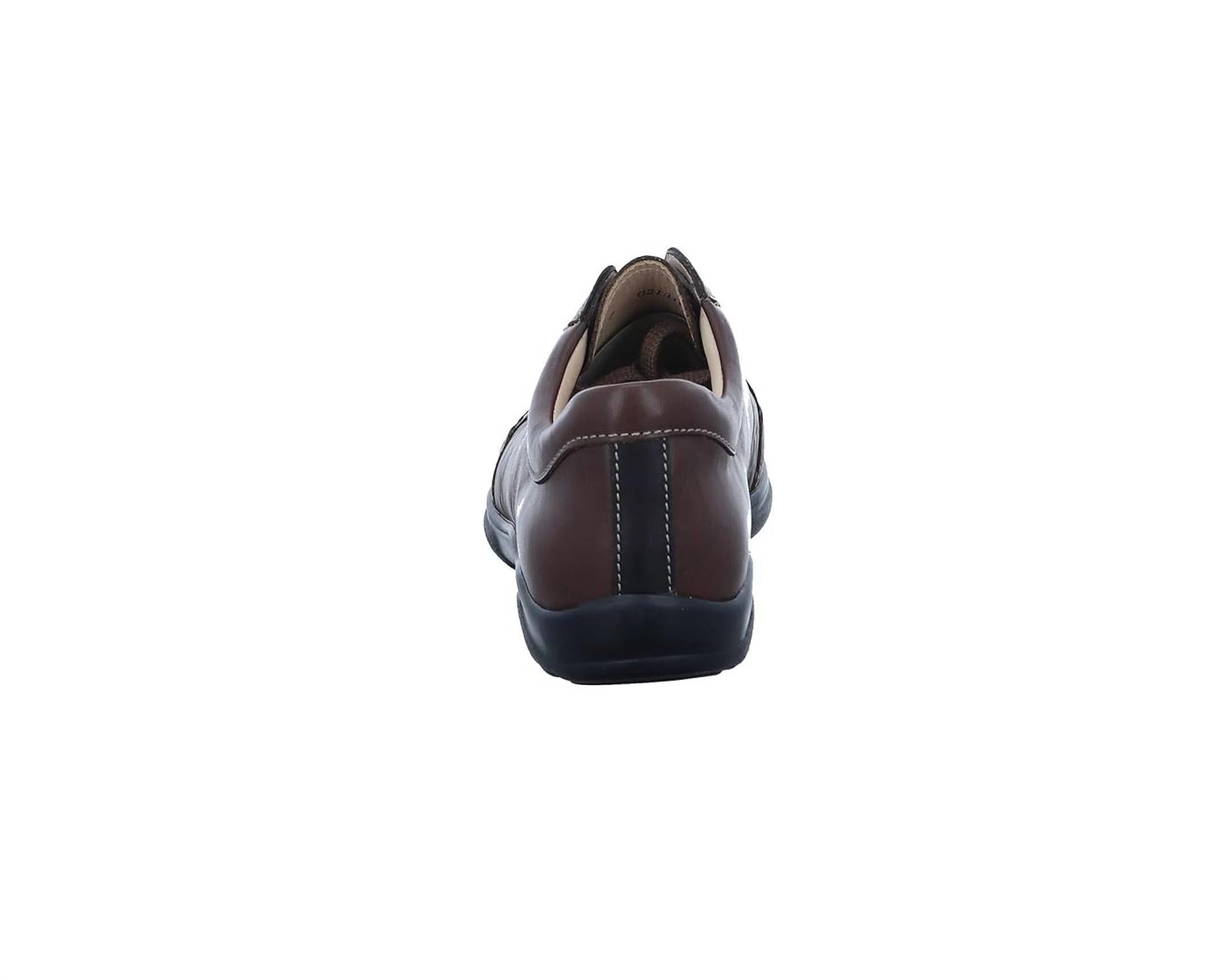 Introducing the Men's Alamo Shoes by Finn Comfort, crafted with a premium leather upper. These loafers feature a traditional lace-up vamp and a round toe, ensuring both style and comfort. The regular removable footbed is made from suede leather, jute, and cork, providing a customizable fit. The flexible PU outsole offers standard fit and versatility, with a subtle heel height of 12mm, perfect for all-day wear.