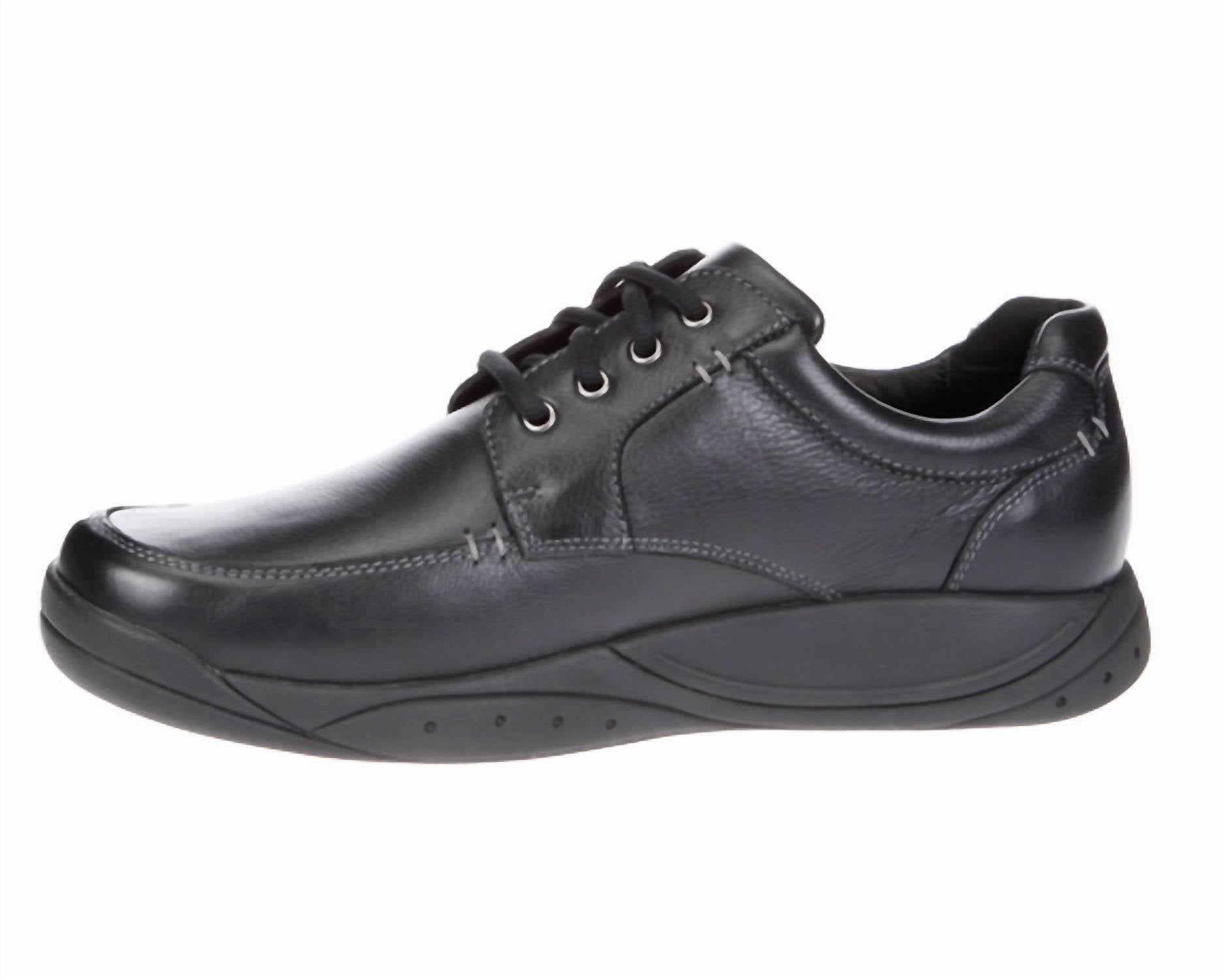 This casual shoe offers comfort and support with built-in motion technology, gel pads for pressure relief, and a lightweight midsole. It features seamless and leather linings, a moisture-wicking footbed, and a slip-resistant outsole for all-day comfort and stability.