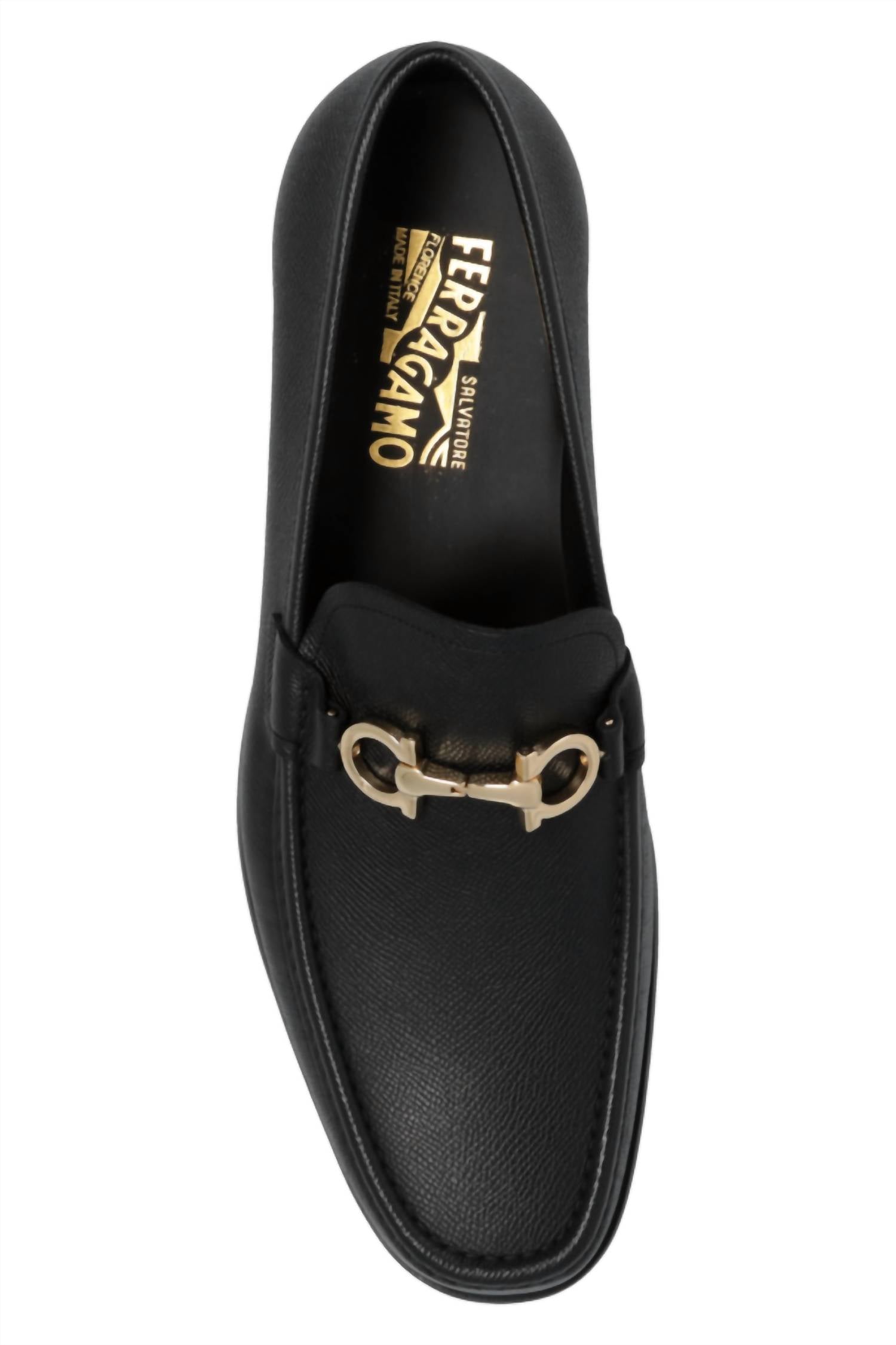 Discover the Men's Chris Slip On Moccasins by Salvatore Ferragamo, an epitome of minimalist elegance perfect for a sophisticated dinner party. Expertly crafted from 100% calf leather with a distinct black hue, these moccasins feature a signature gold-tone Gancini buckle complemented by unique stitching details. The durable 100% rubber sole, enhanced with a block heel style measuring 2.5cm in heel height and 0.5cm in sole height, ensures both comfort and style. Ideal for spring and festive New Year’s Eve occasions, their round toe design adds to an understated yet luxurious appeal.