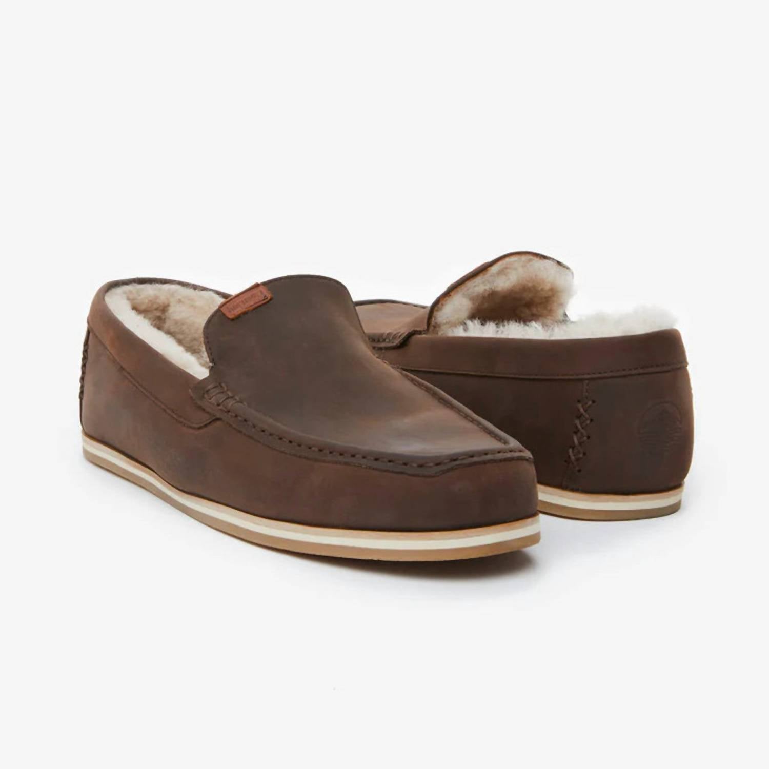 Step into unparalleled luxury with the Men's Hacienda LX Shoe by Hari Mari in Havana. Crafted from premium full-grain leather, this stylish slipper is lined with genuine Texas shearling for warmth and features a memory foam footbed for superior comfort. The real rubber outsole ensures versatile indoor/outdoor wear, while a weather-resistant treatment protects against the elements. Experience elevated casual style with a flat heel and round toe, perfect for fall.
