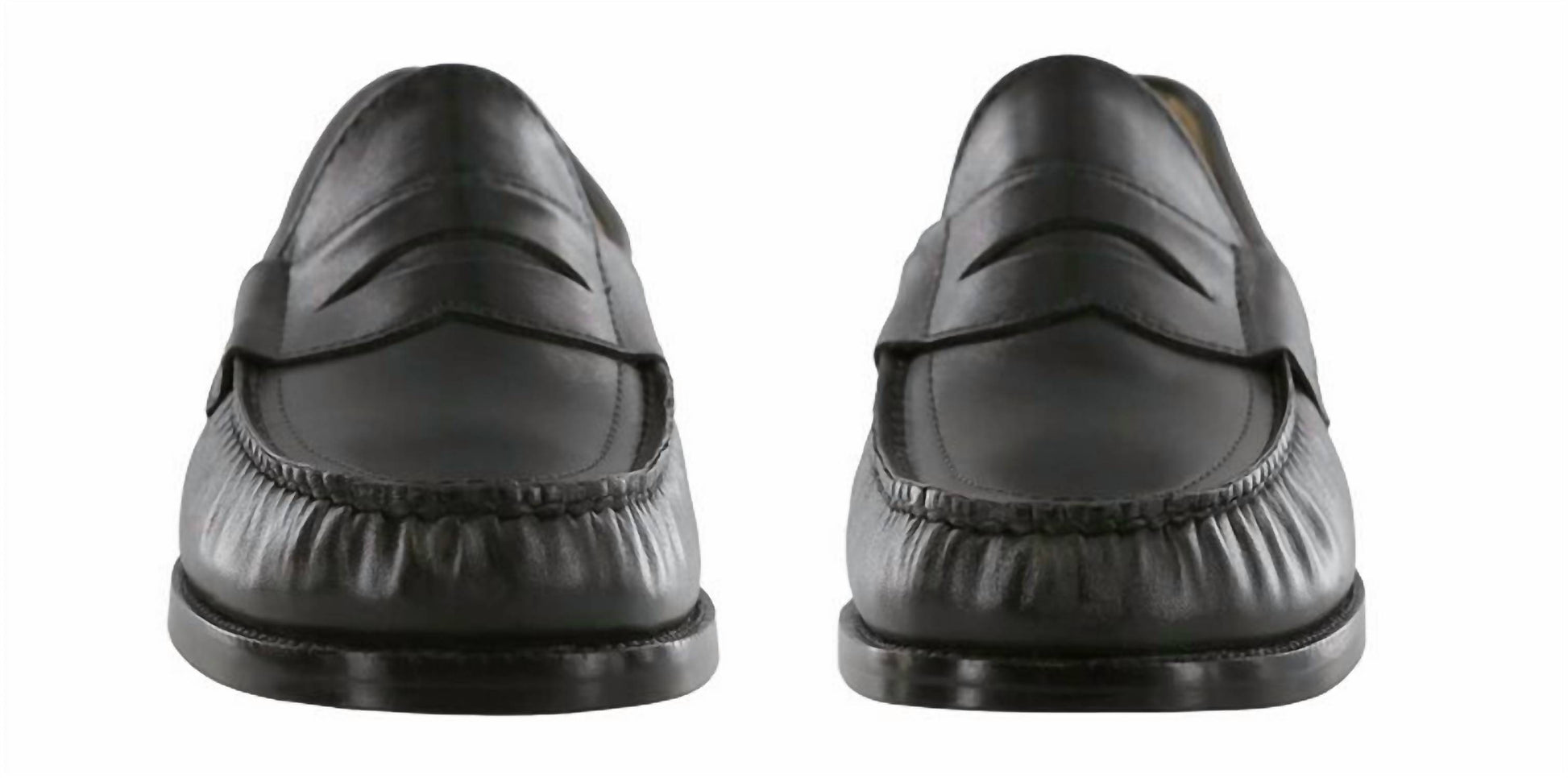 A genuine leather sole and moccasin construction help give a durable yet cushioned feel to each step. A built-in metal shank supports and prolongs the life of this classic penny loafer. Handcrafted in Texas. Heel Height: 1.00".