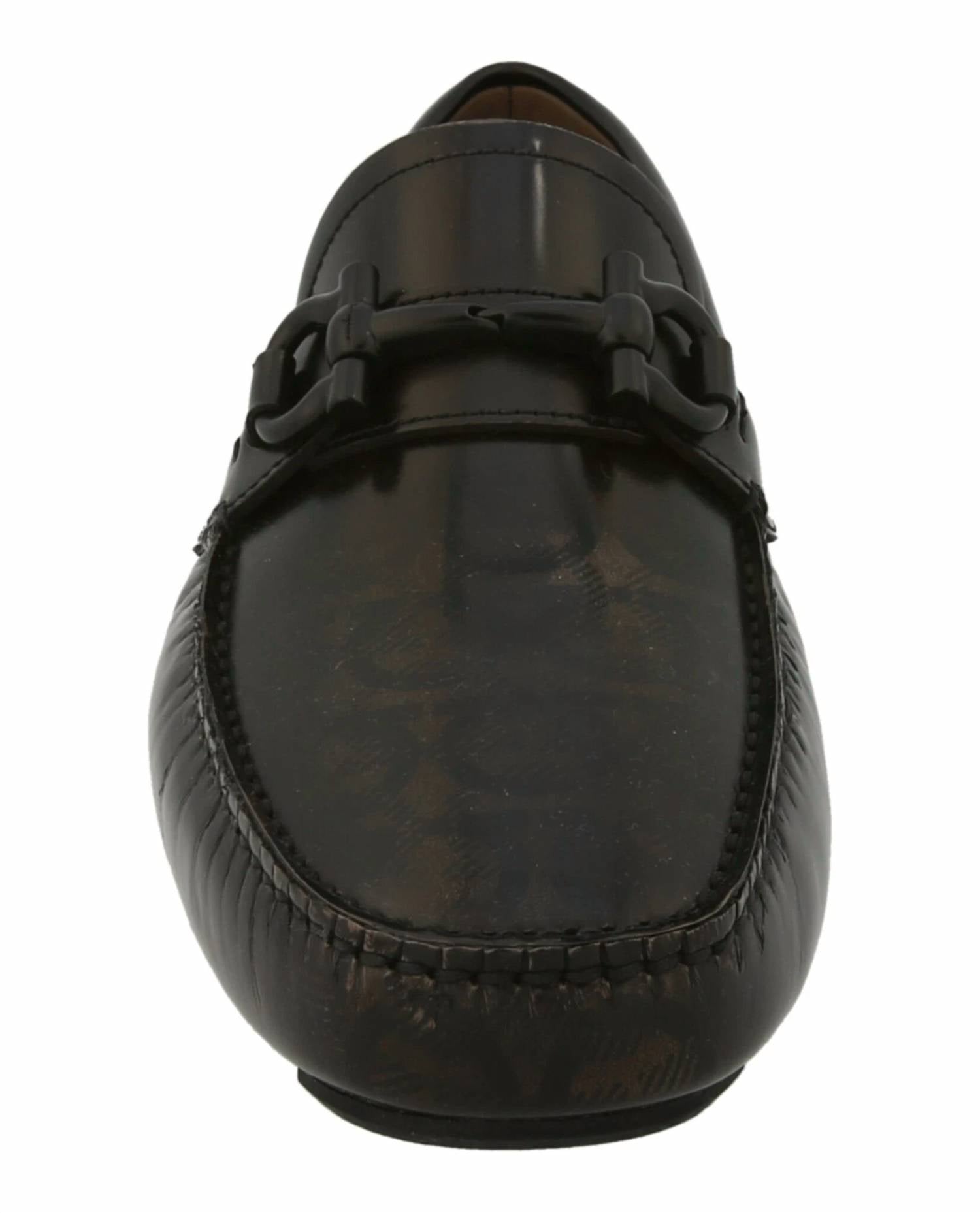 Experience luxury and style with the Men's Parigi Gancini Leather Driver Loafers by Salvatore Ferragamo, tailored for the discerning gentleman. These minimalist loafers are crafted from premium leather, featuring matte black Gancini hardware at the vamp, perfect for both dinner parties and spring gatherings. Designed with a round toe and flat heel, they ensure comfort without compromising sophistication. These sleek brown loafers effortlessly slide on, offering an elegant touch for Thanksgiving celebrations and beyond.