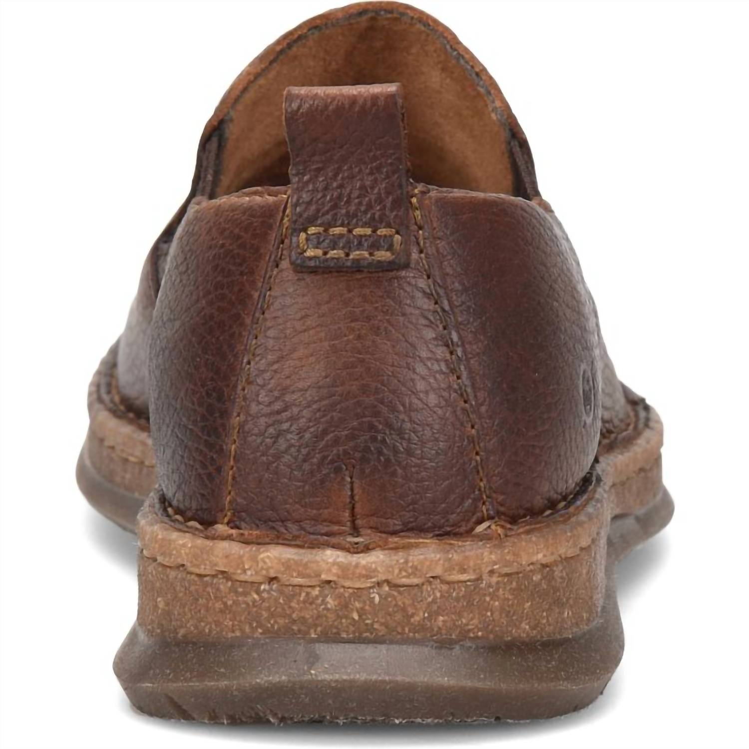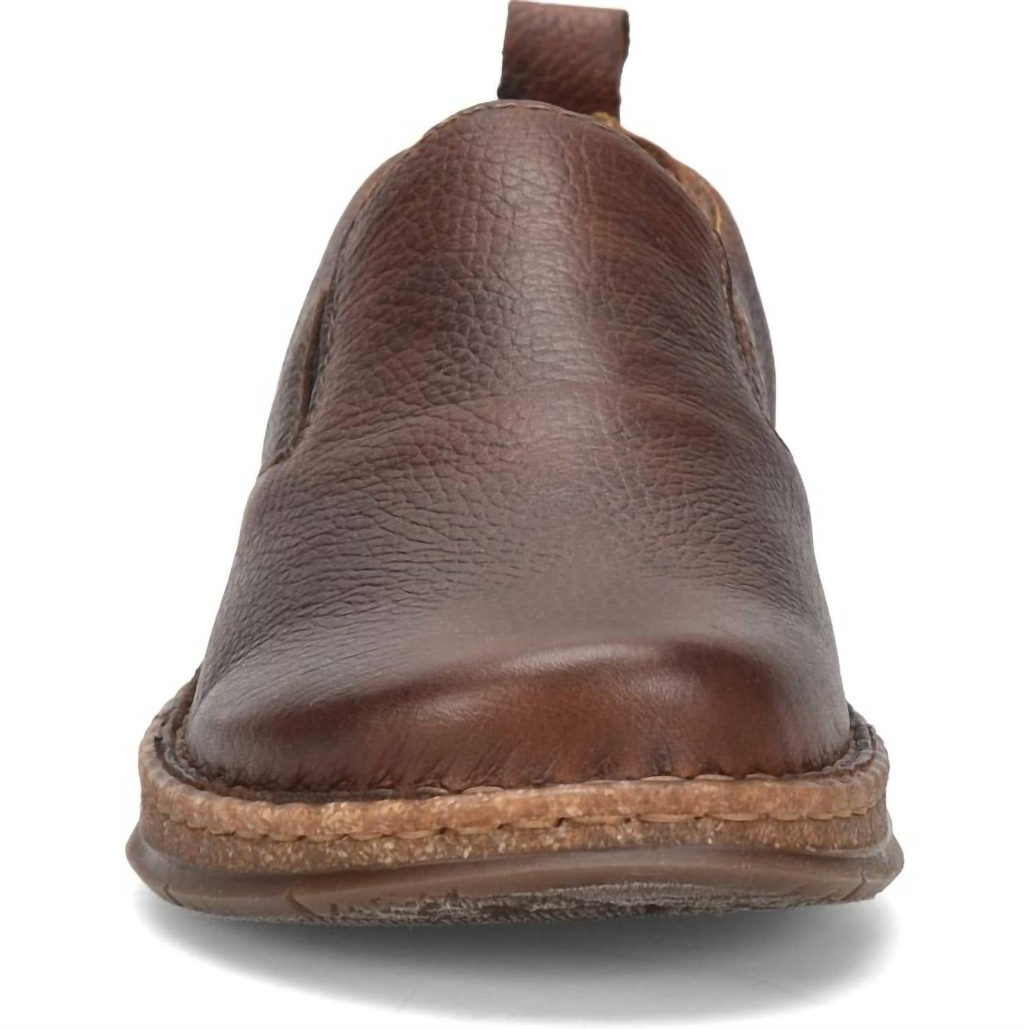 Introducing the Men’s Bryson Slip On Shoes by Born, a sophisticated choice in Dark Brown Leather for the modern man. Designed with a soft hand-finished leather or distressed suede leather upper and a breathable soft micro suede lining, these loafers prioritize comfort and style. The removable micro suede covered footbed with extra foam ensures additional comfort, while the high-traction flexible cork-infused lightweight rubber outsole provides durability. Perfect for adult men seeking a low heel height of 1.25", these shoes exemplify Born's commitment to quality craftsmanship.