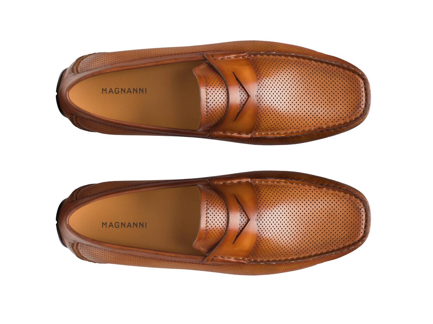 Step into timeless elegance with the Men's Cole Penny Loafer by Magnanni, finished in a rich cognac al tono hue. Crafted from premium leather, this loafer features a squared toe and classic penny loafer strap, enhanced with a hand-stitched moccasin toe design. Perfect for a fall evening event, it boasts a flat heel under 1", ensuring comfort throughout the night. Enjoy the luxury of a leather lining and padded insole, a nod to both vintage style and modern comfort.