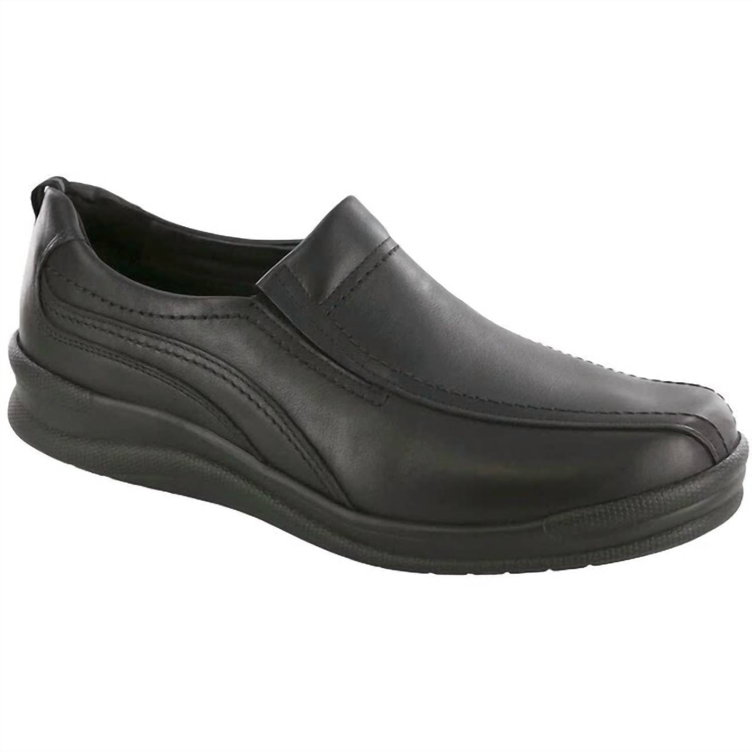 This shoe is built for easy, comfortable walking, featuring a cushioned sole that flexes with your foot. Stretch panels on the sides ensure a snug fit, while soft leather conforms for a relaxed feel. The roomy design keeps toes comfortable, and the removable footbed adds extra support.