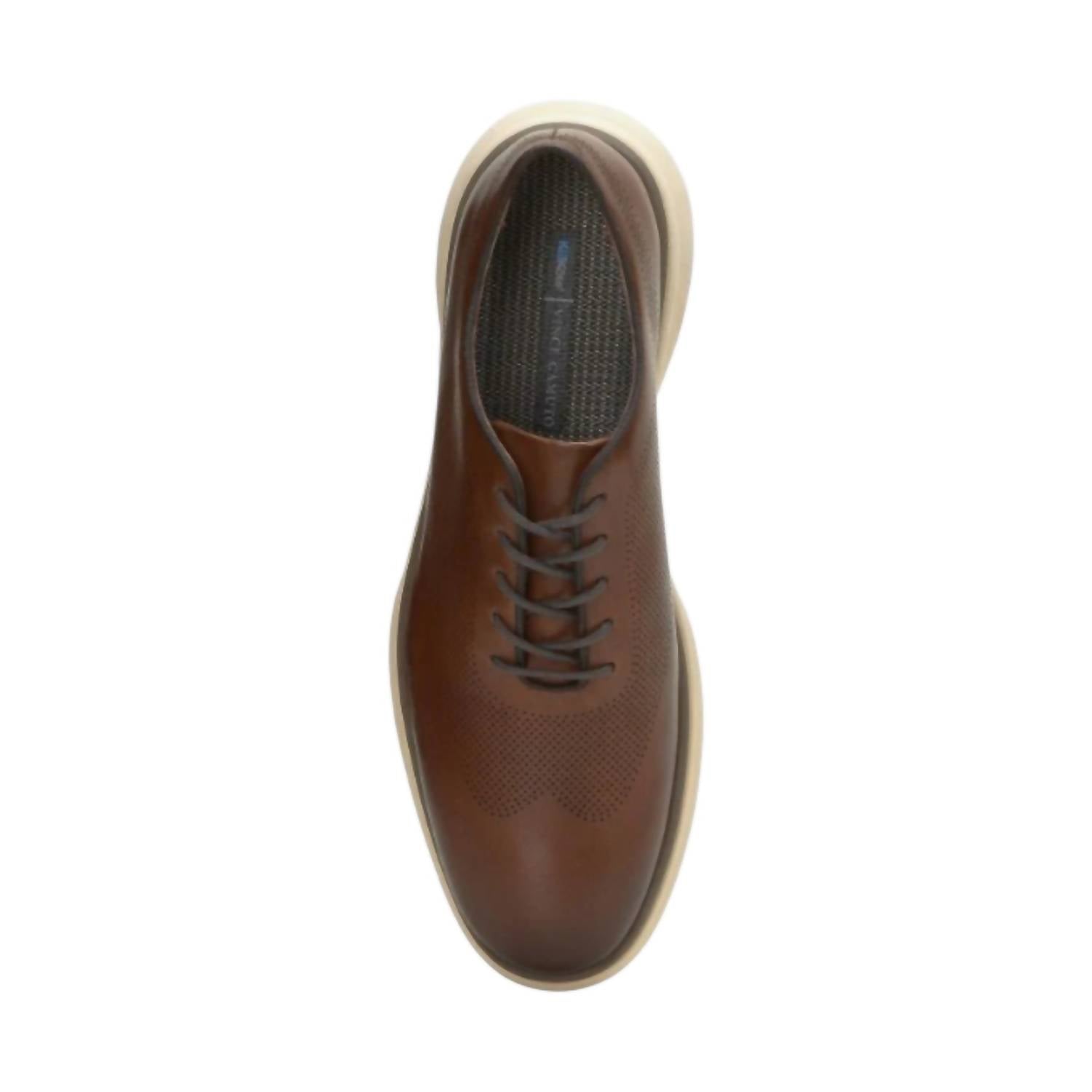 Elevate your style with the Men's Talmai Dress Shoes by VINCE CAMUTO, crafted in rich Cuero leather for an effortlessly elegant look. These round-toe lace-up shoes feature a supportive cupsole for stability and a cushioned midsole that enhances energy return, while the durable rubber outsole ensures superior traction and durability. The design includes a removable performance footbed and a perforated upper with blind eyelets for added breathability. Composition includes a leather upper, polyester lining, and rubber outsole, all meticulously crafted for the refined gentleman. Imported.