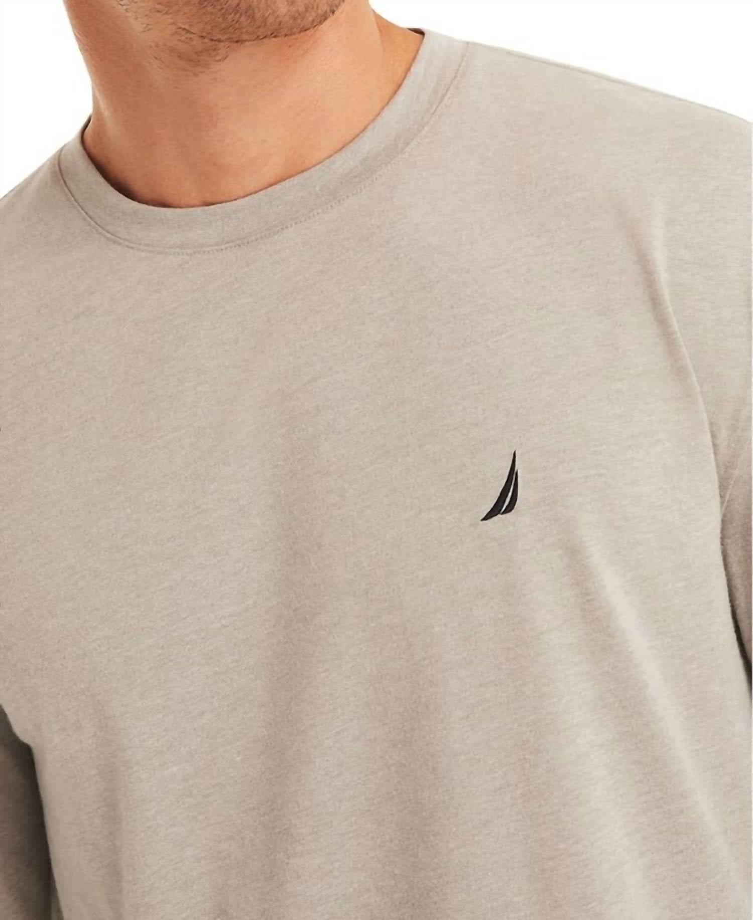 Elevate your travel essentials with the Nautica Pajama Long-sleeve T-shirt, a perfect minimalist choice in Charcoal Heather. Featuring a classic crewneck and long sleeves, this regular fit tee offers both style and comfort. Crafted from a blend of 60% Cotton and 40% Polyester, it is designed for easy wear with a convenient pull-on closure. Care is effortless with machine wash instructions, making it an ideal companion for spring adventures.