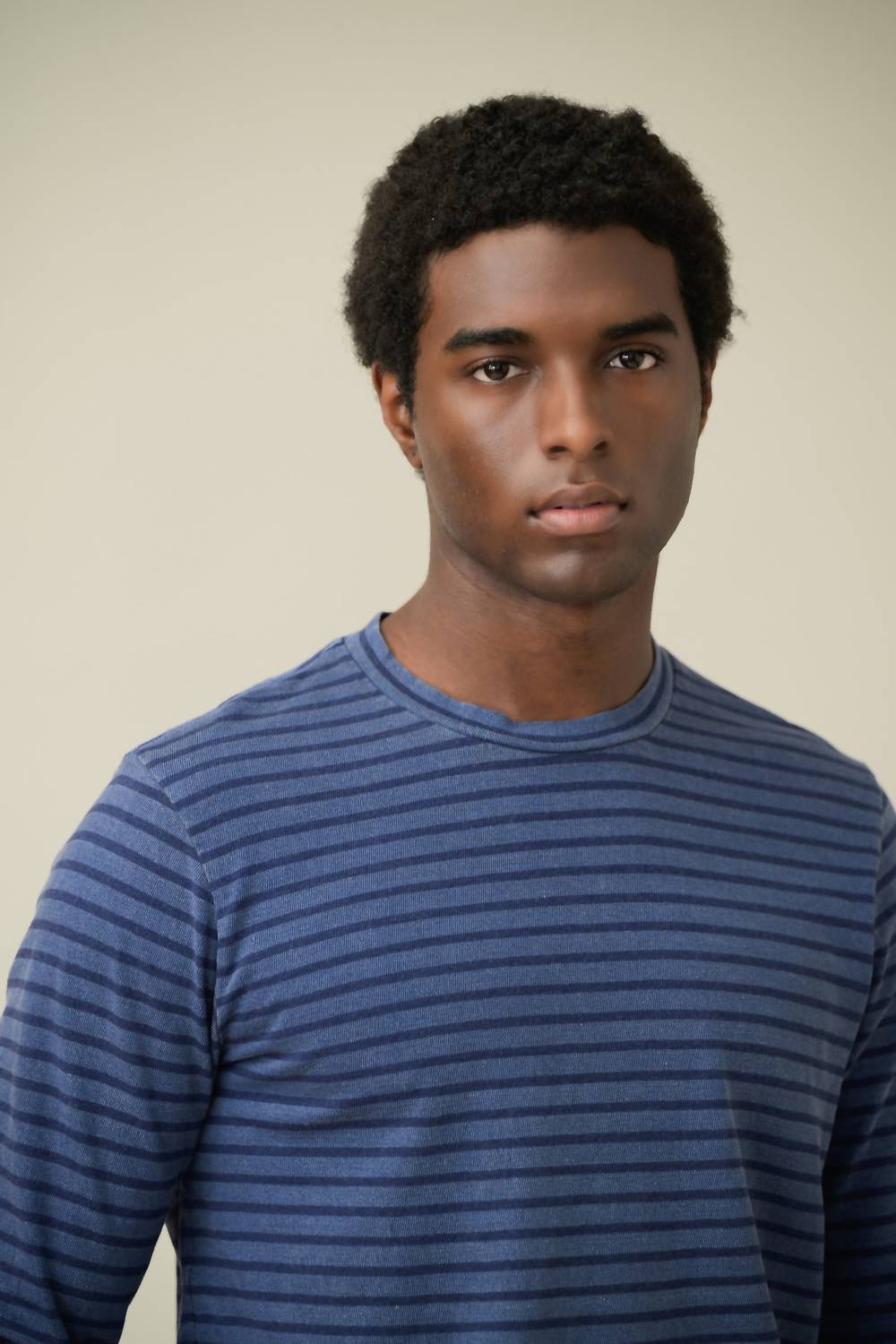 Save Khaki United - Men's Long Sleeve Organic Hemp Stripe Crew Tee