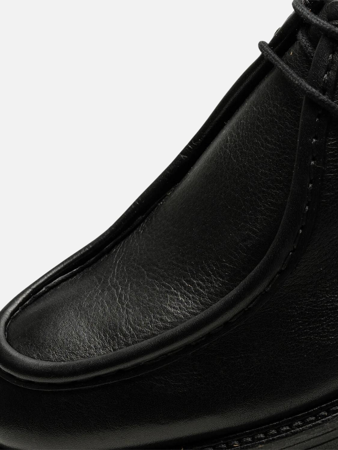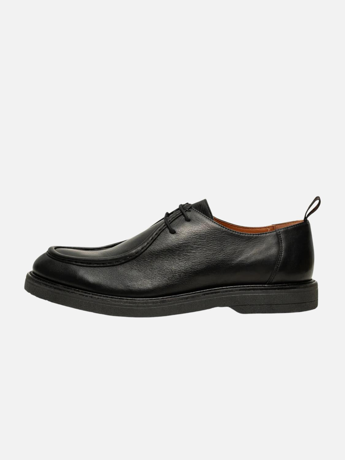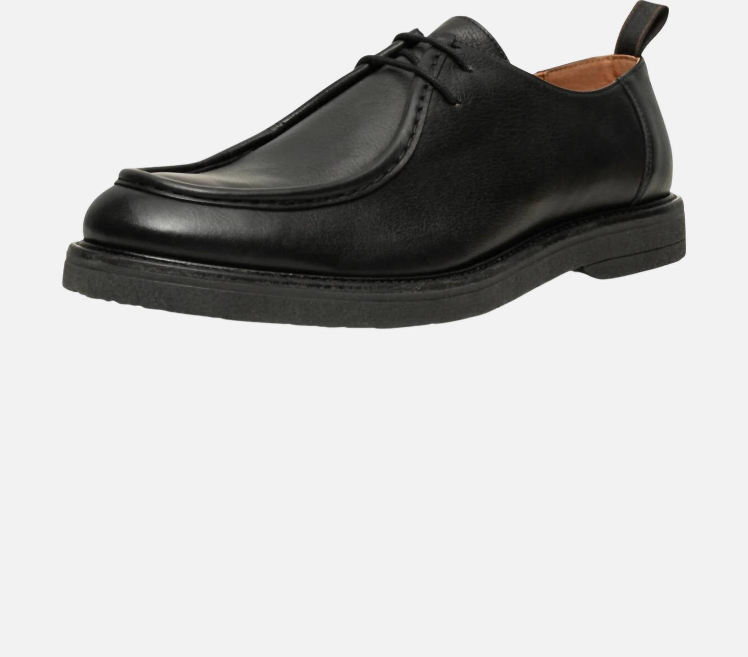 Upgrade your footwear collection with the Men's Kip Wallabee Derby by Shoe the Bear, a perfect balance of style and sustainability. Crafted from 100% certified water-repellent leather from LWG, these black Derbys feature a breathable microfiber lining and a TR rubber outsole. With a soft contoured insole covered in leather and a comfortable flat heel of 2.5 cm, they're designed for both black-tie events and casual elegance. Made in Portugal, this pair combines modern design with sustainable luxury for the adult man.