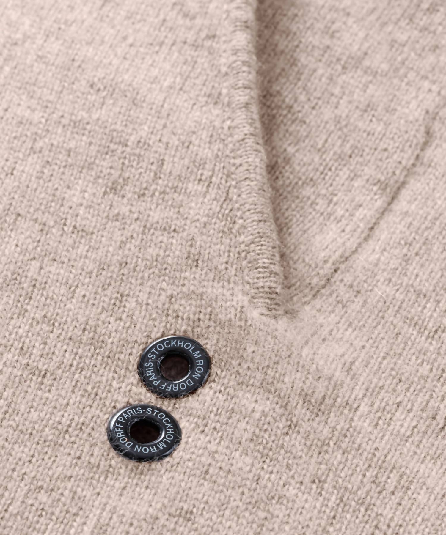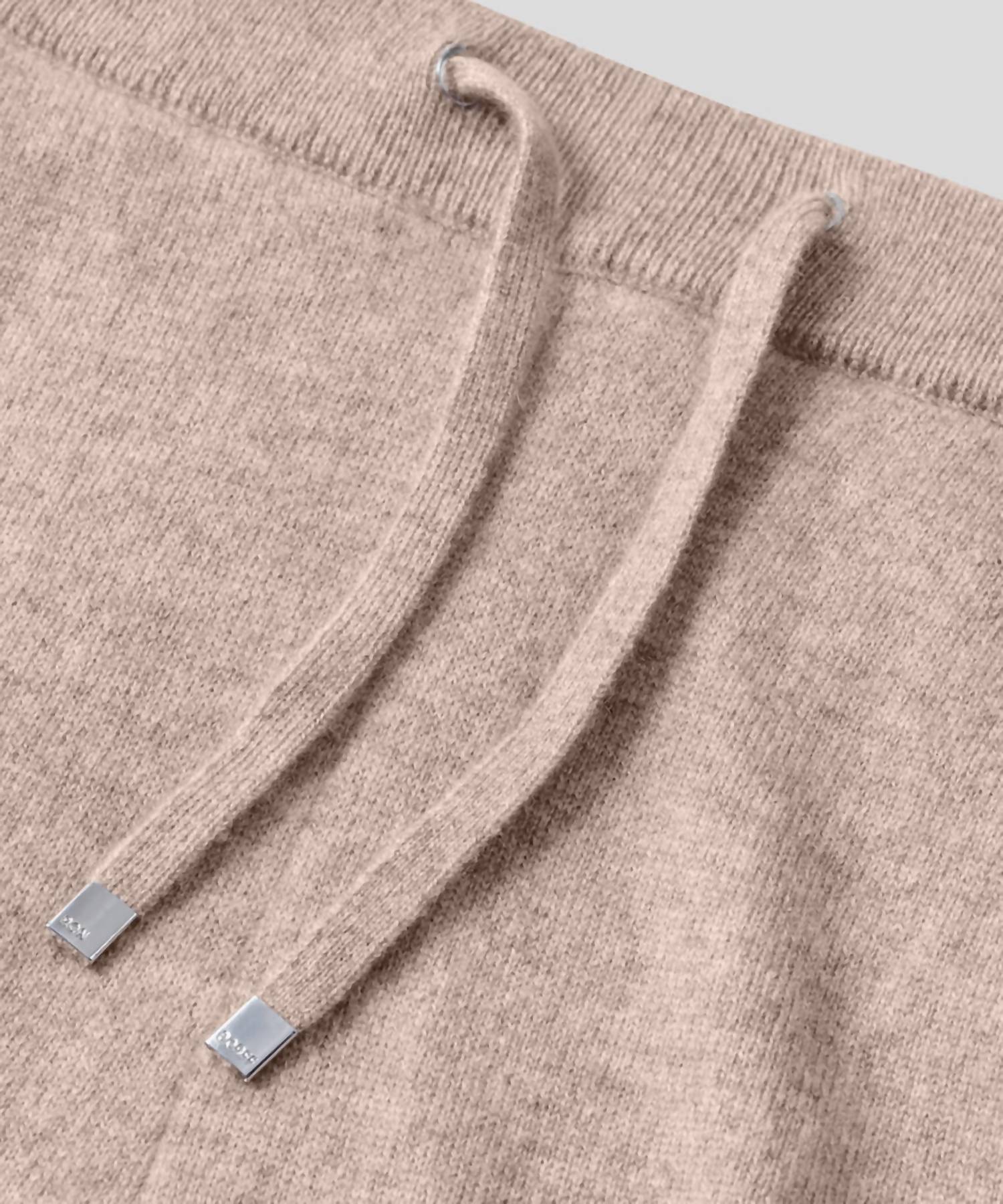 Introducing the Ron Dorff Men's Lounge Pants, crafted in a luxurious heather beige for ultimate comfort and style. These sweatpants are made from 100% ultra-soft, breathable sports cashmere and feature a slightly tapered fit with an elastic waistband and adjustable drawstring, complete with RD engraved metal tips. Proudly made in China, these lounge pants come without back pockets but include the signature black-lacquered RD eyelets on the side. Care: Hand wash cold only, dry flat. Model is 6'2" and wears a size M (32'') for a tapered fit, with sizing ranging from XS to XXL based on waist and hips measurements.