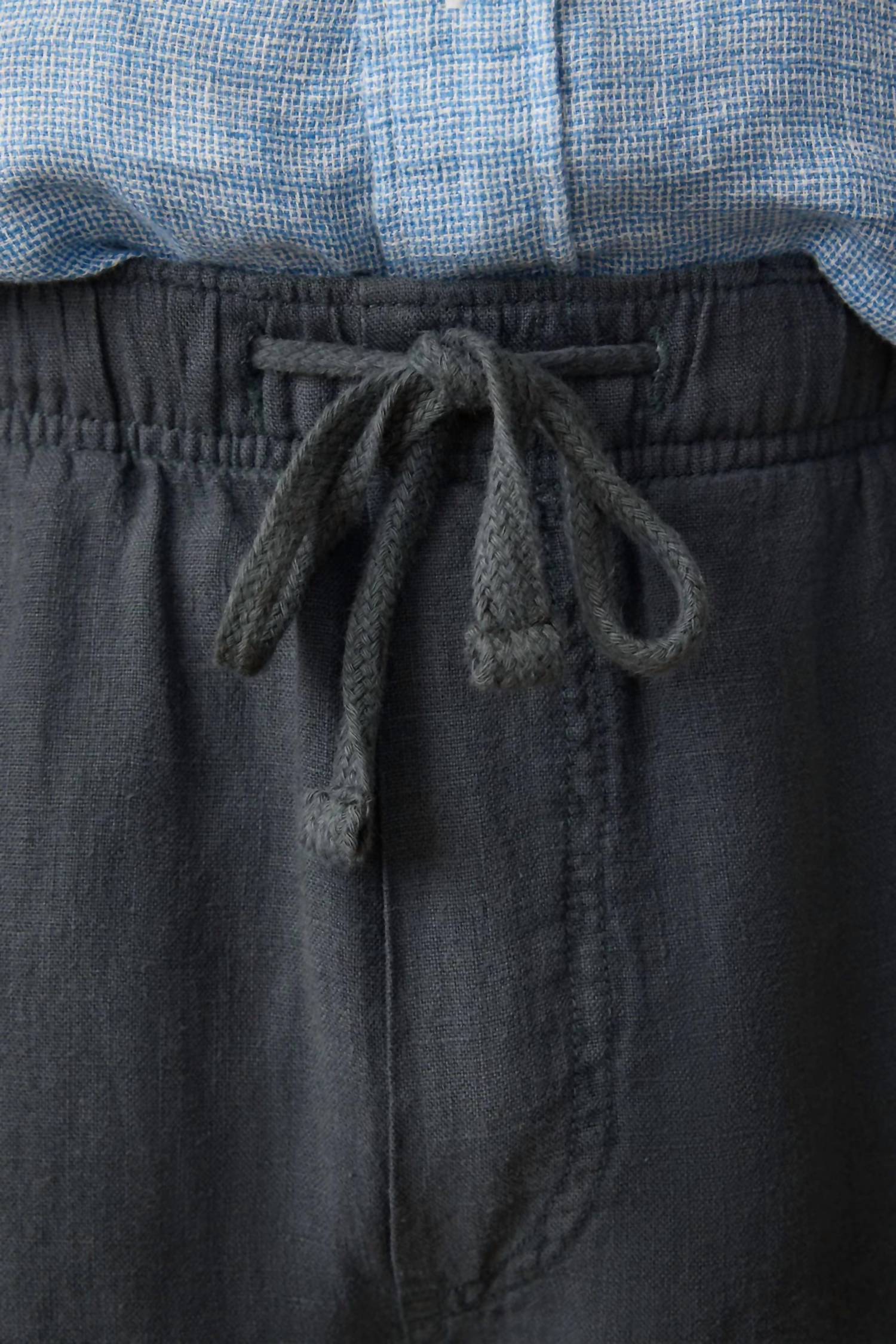 Discover the Linen Drawstring Pant by Faherty, a must-have for summer style in versatile Washed Black. These pants feature a slim, straight leg fit sitting just below the natural waist, with a pull-on style complemented by an elasticized drawstring waistband, faux fly, and convenient side slash pockets. Material: 100% Linen with Coconut Buttons adds a touch of nature-inspired elegance to your wardrobe. Care: Turn inside out, machine wash cold with like colors on a gentle cycle; do not bleach, lay flat to dry, and cool iron if necessary. Model Quetzal is 6'1" and wears a size Medium.