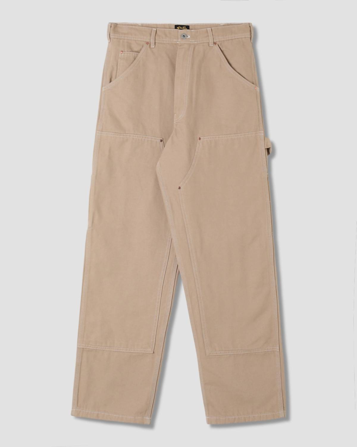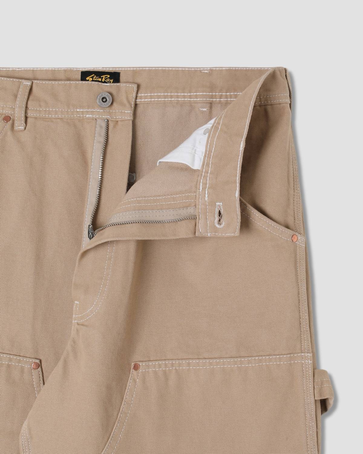 Discover the khaki duck Double Knee Pant by Stan Ray, perfect for practical use with style. These pants are crafted from 100% cotton, offering a regular fit and mid-rise waist with straight legs for comfort and durability. Designed with a button closure, they feature heavyweight triple needle construction, riveted stress points, and double-layer front leg panels, complete with tool pockets and a hammer loop. With a 22cm leg opening, these versatile cargo pants are machine washable and can be tumbled dry, ideal for your spring travel adventures.