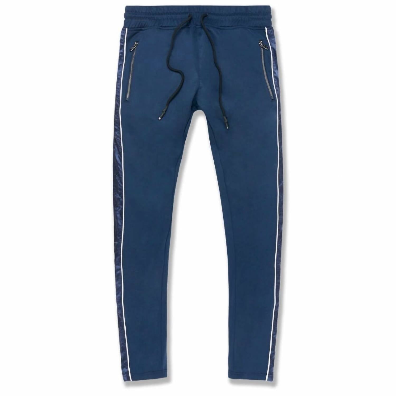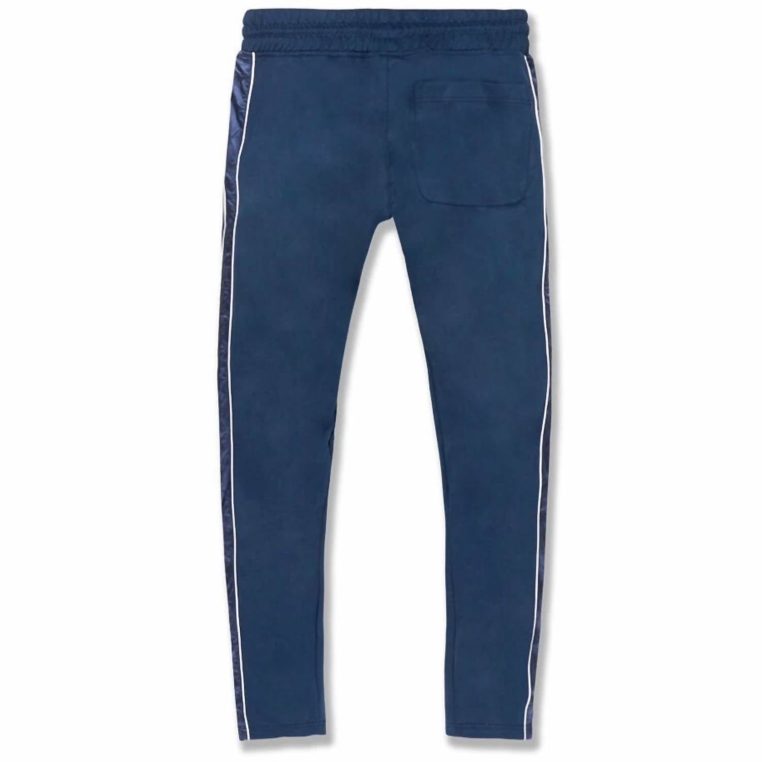 Experience comfort and style featuring a sleek navy solid design. Tapered-leg track pants boast rubber-dipped drawstrings with metal tips and dual zippered side pockets for ultimate convenience. Made from 90% double knit polyester and 10% spandex. Fabric is extremely smooth and soft to the touch, ensuring optimal comfort throughout your day. Pull on. Machine wash.